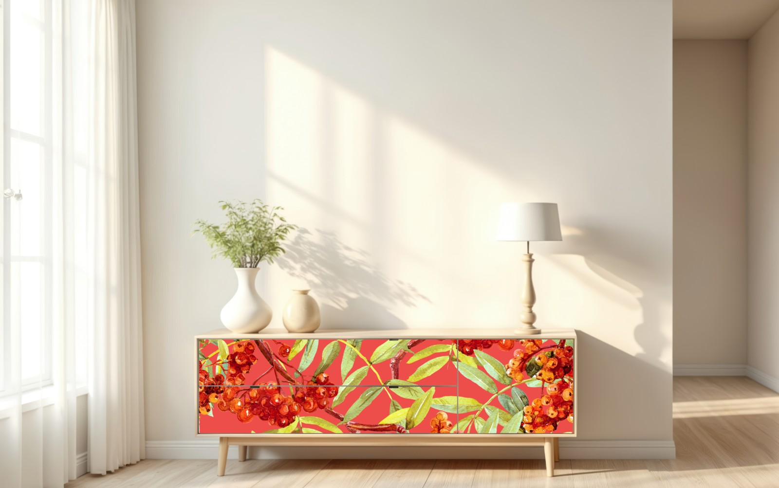 Repositionierbarer Aufkleber Aquarellmuster mit vogelbeeren