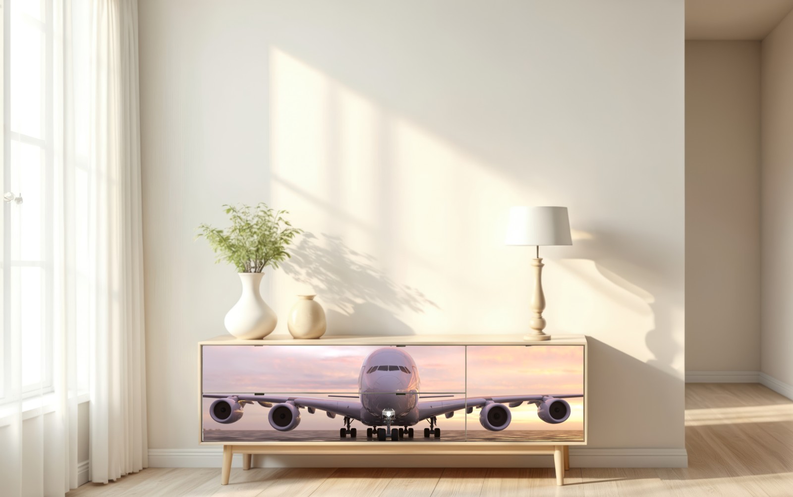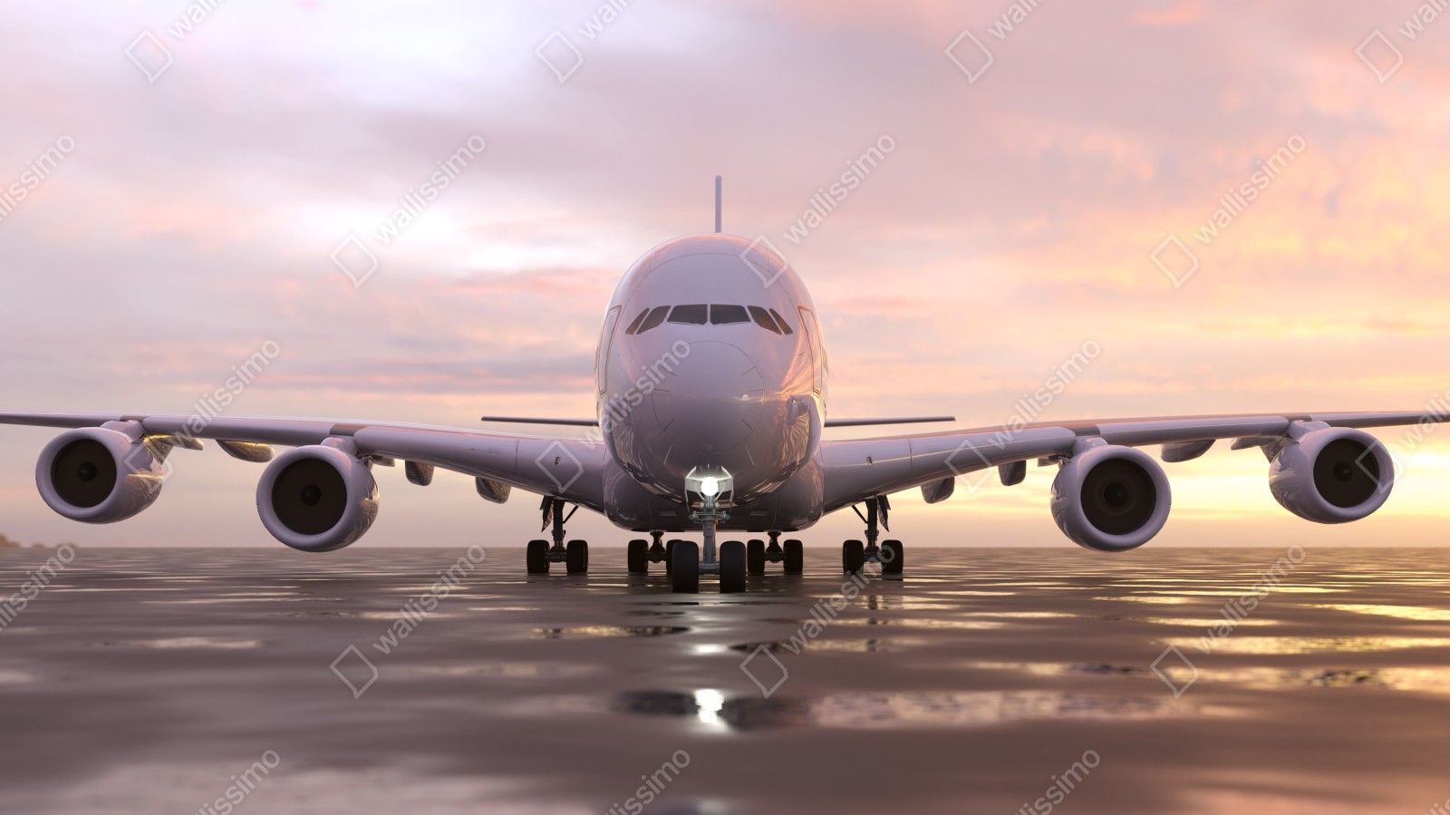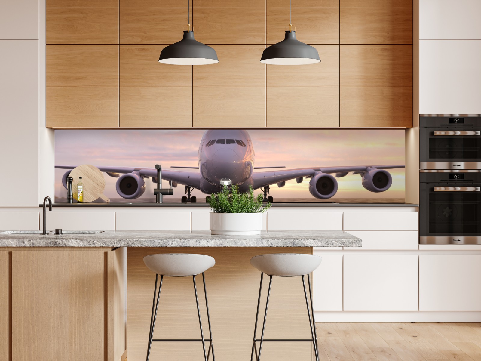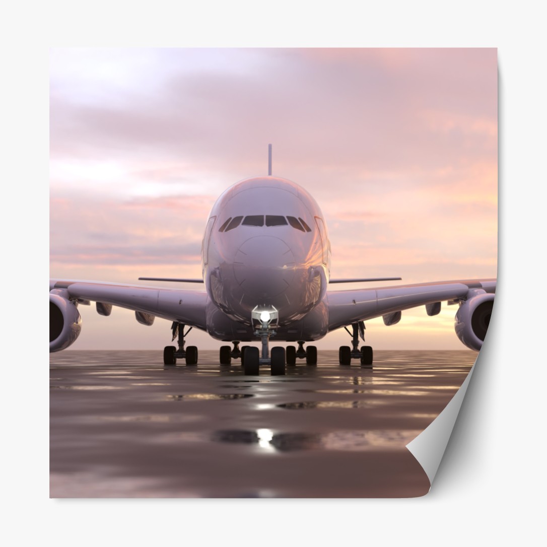 Repositionierbarer Aufkleber Jet auf der startbahn bei sonnenuntergang