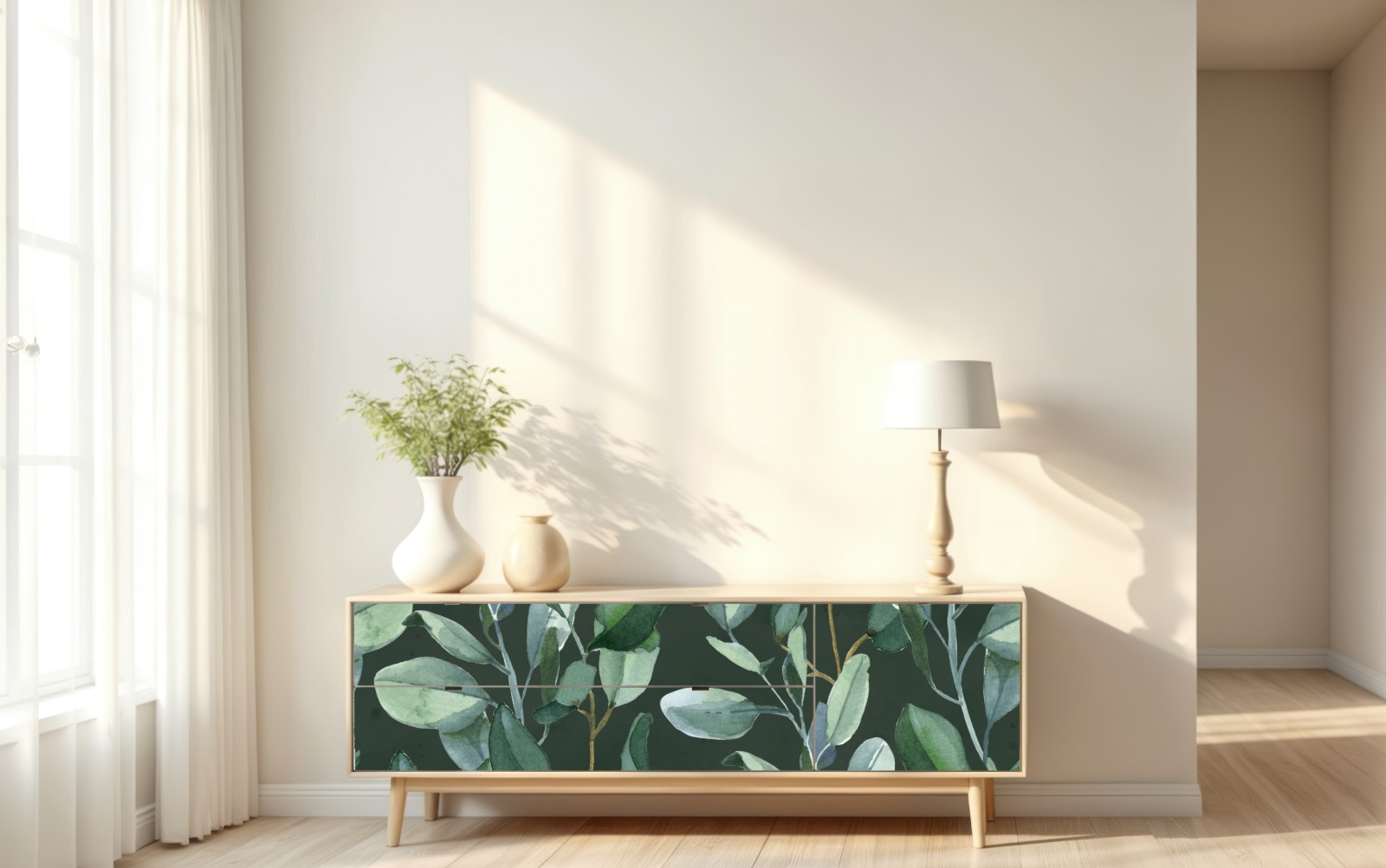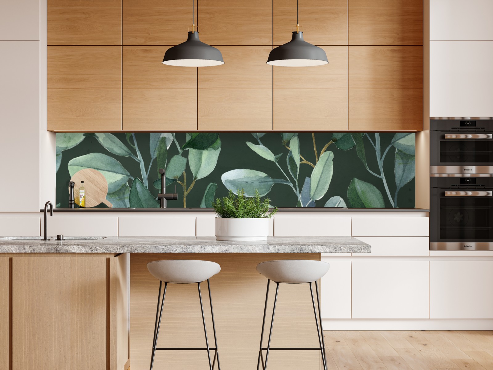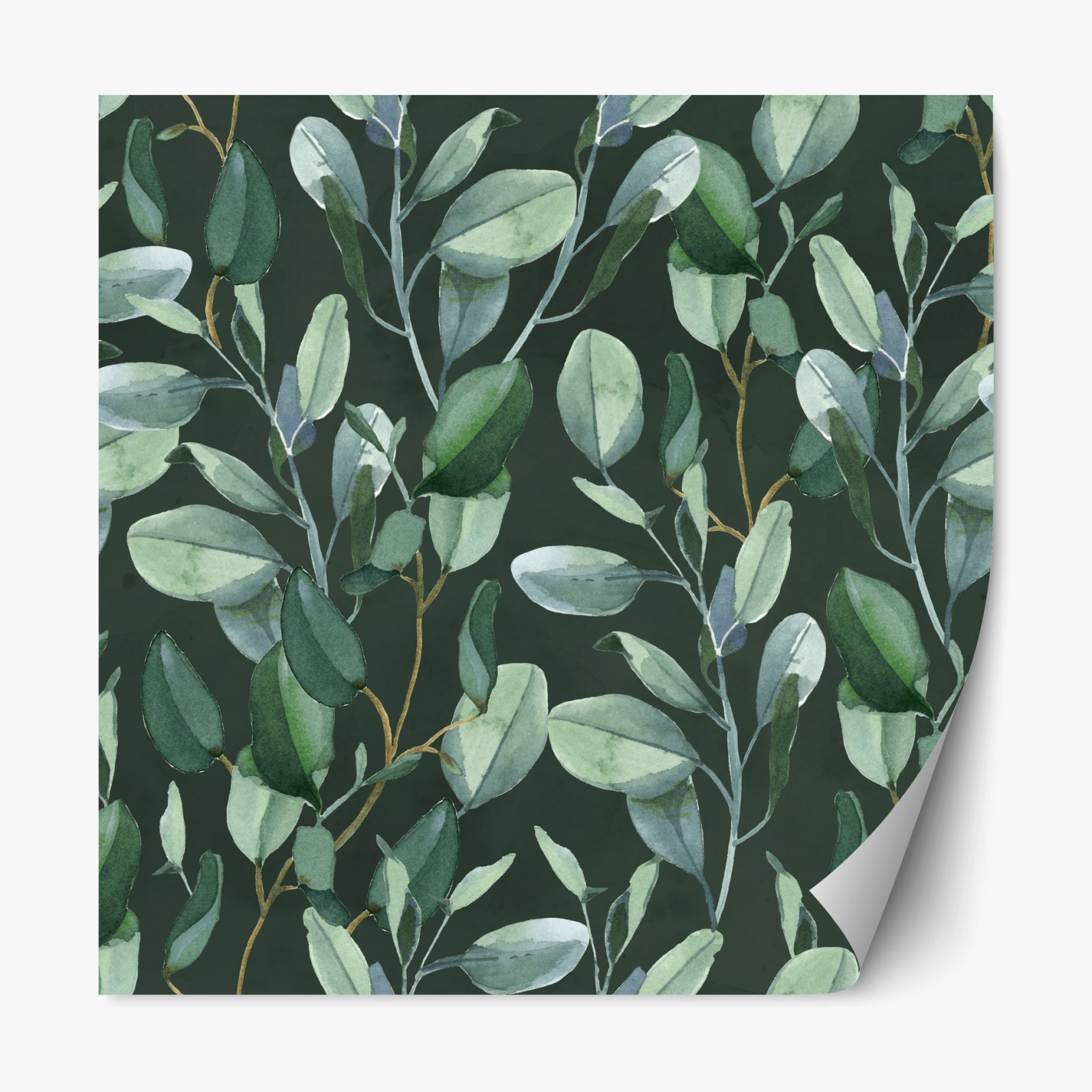 Repositionierbarer Aufkleber Aquarell eukalyptusblätter muster auf dunkelgrünem hintergrund