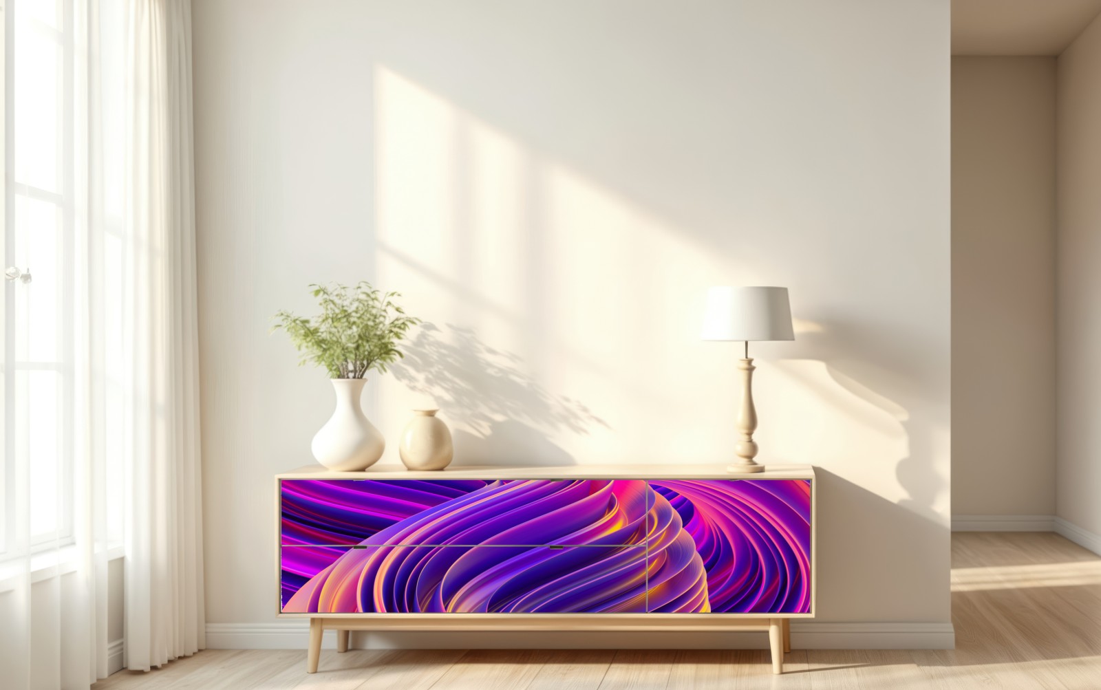 Repositionierbarer Aufkleber Leuchtender lila 3d bandwirbel