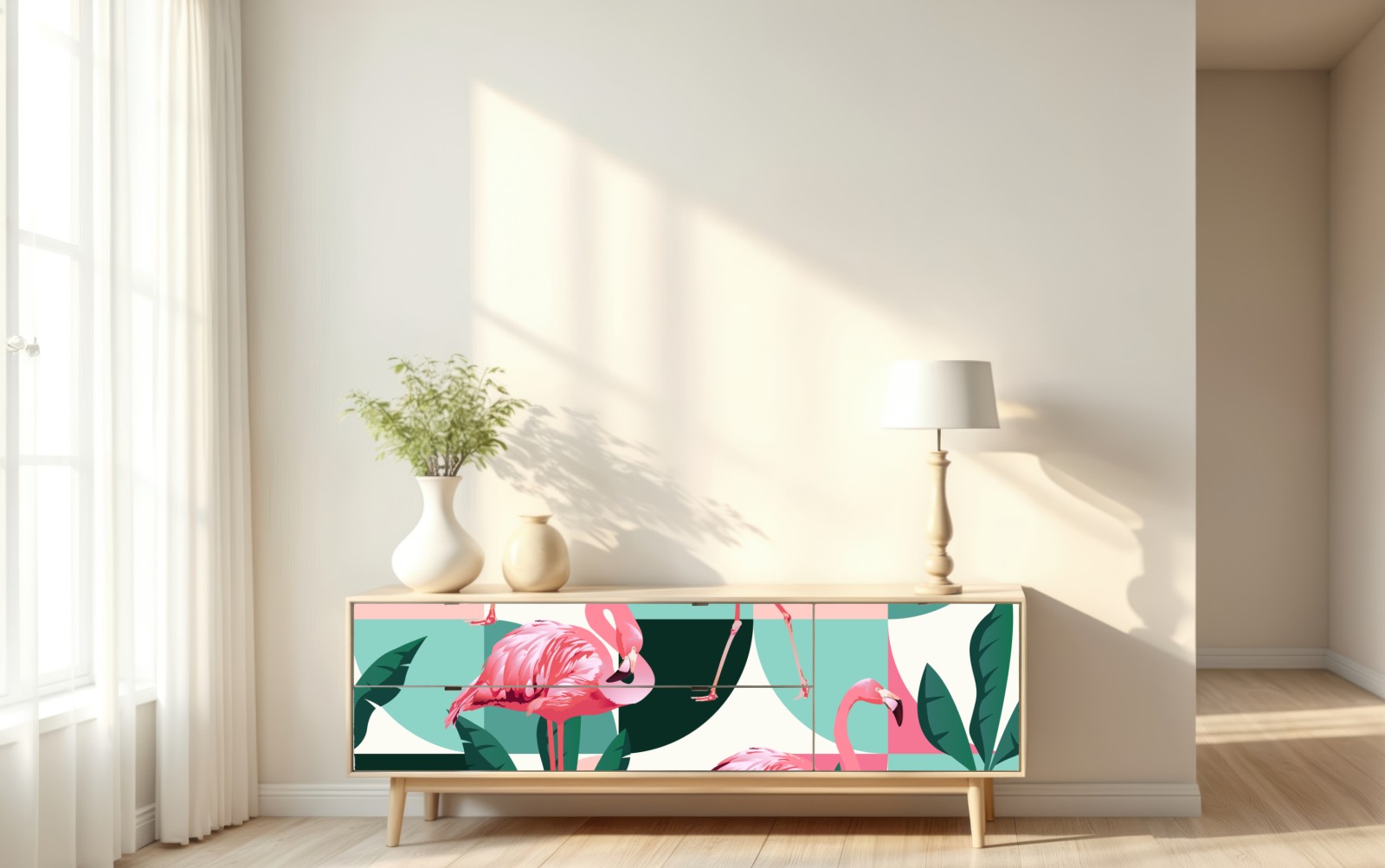 Repositionierbarer Aufkleber Verspieltes rosa flamingo-muster