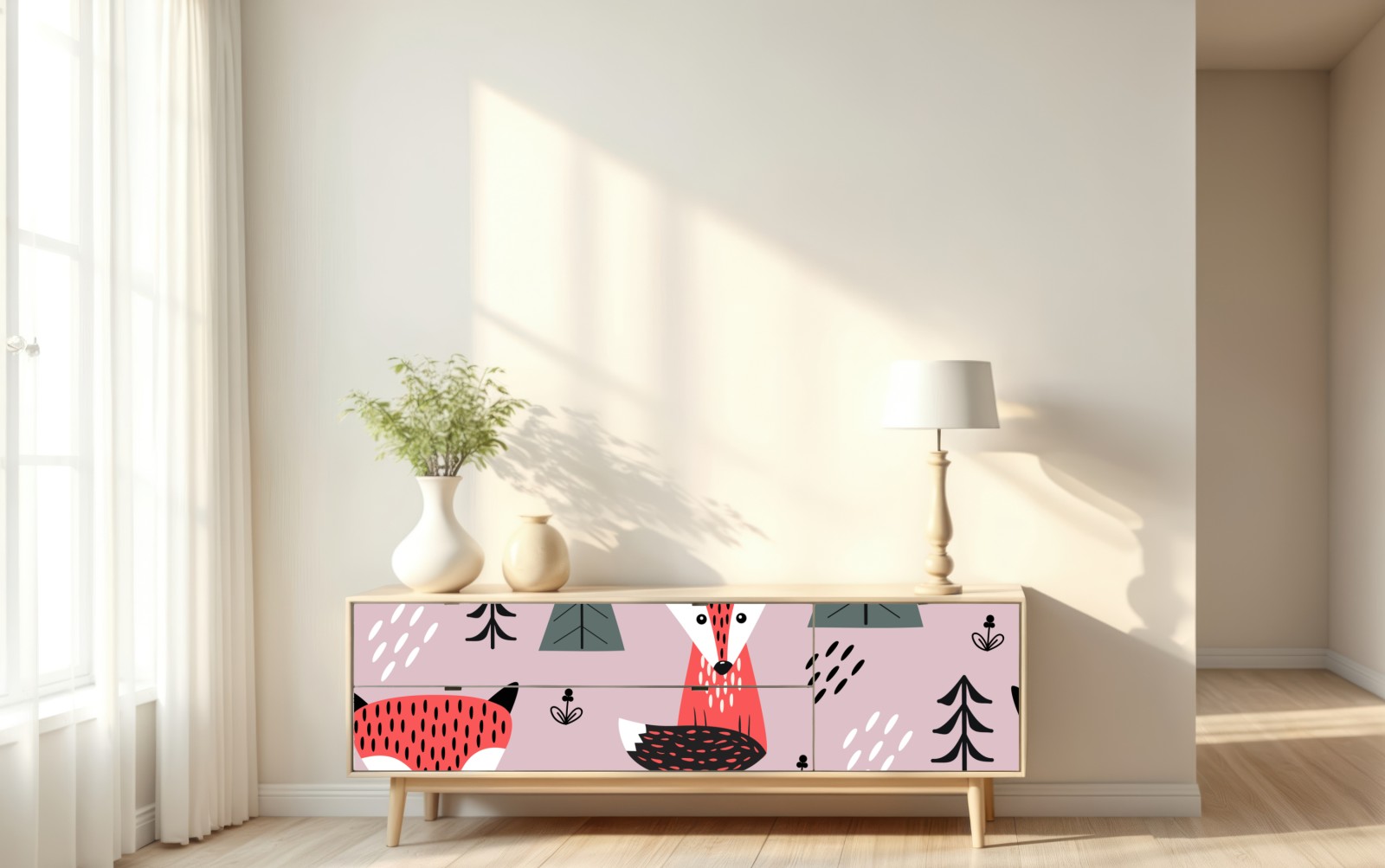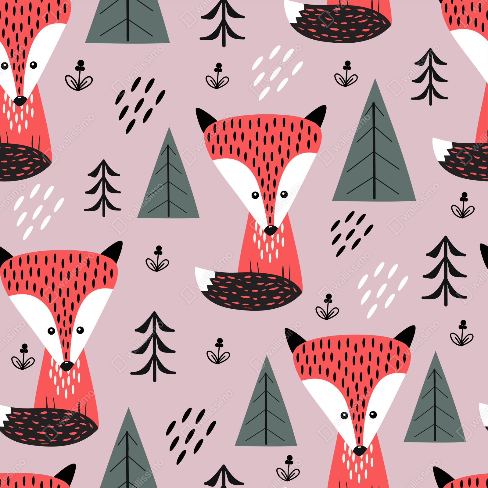 Repositionierbarer Aufkleber Verspieltes fuchswaldmuster