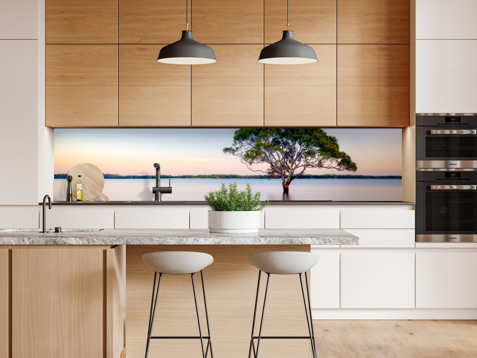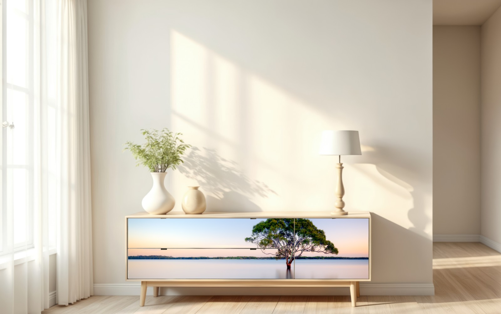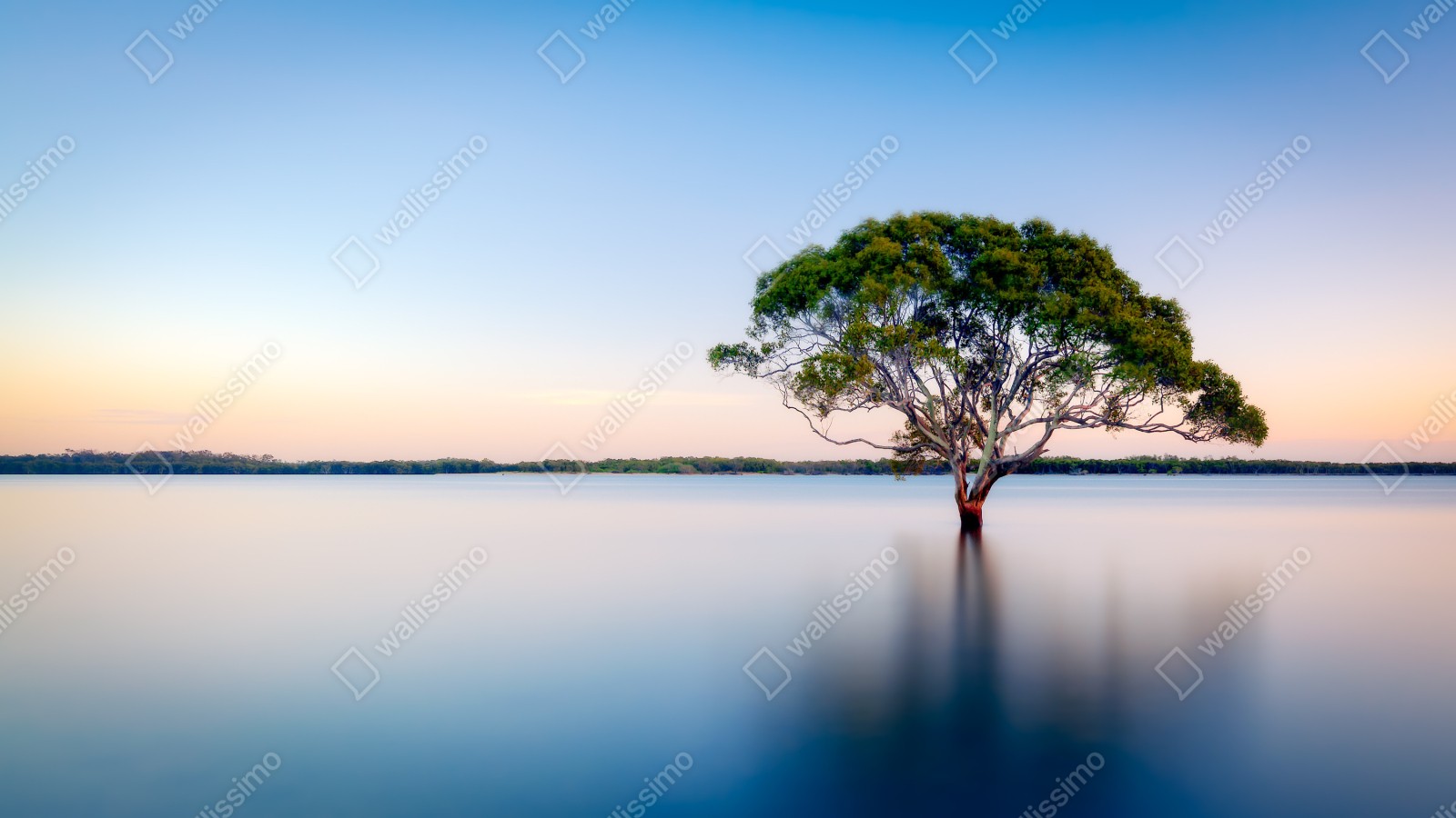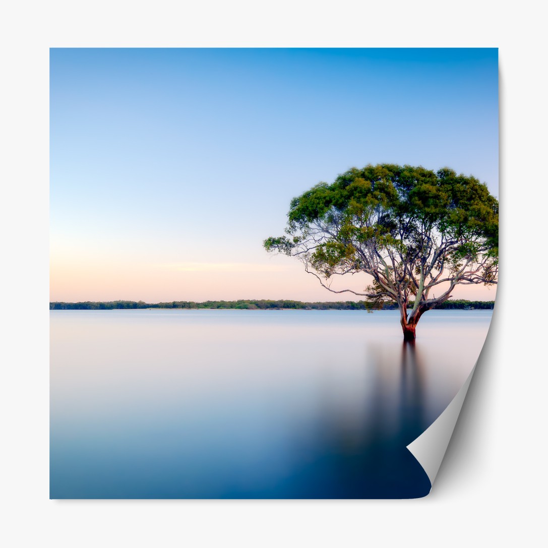 Repositionierbarer Aufkleber Einsamer baum am stillen see