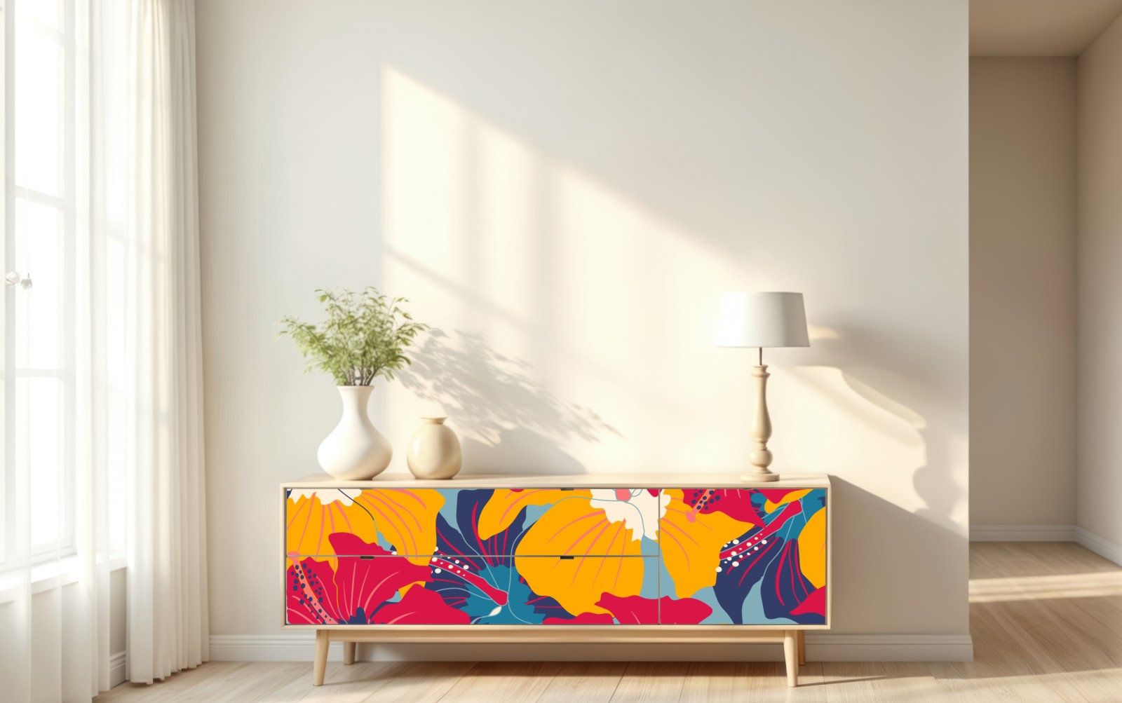Repositionierbarer Aufkleber Lebhaftes hibiskusmuster