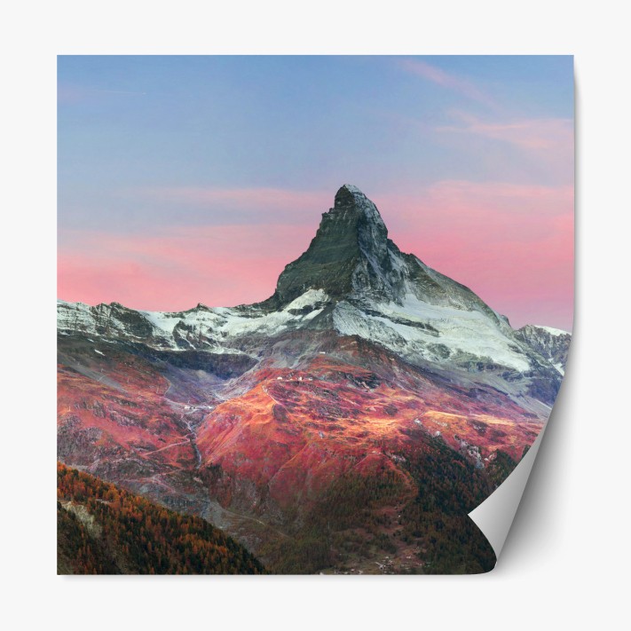 Repositionierbarer Aufkleber Herbstliche panoramaaufnahme des Matterhorns bei sonnenuntergang