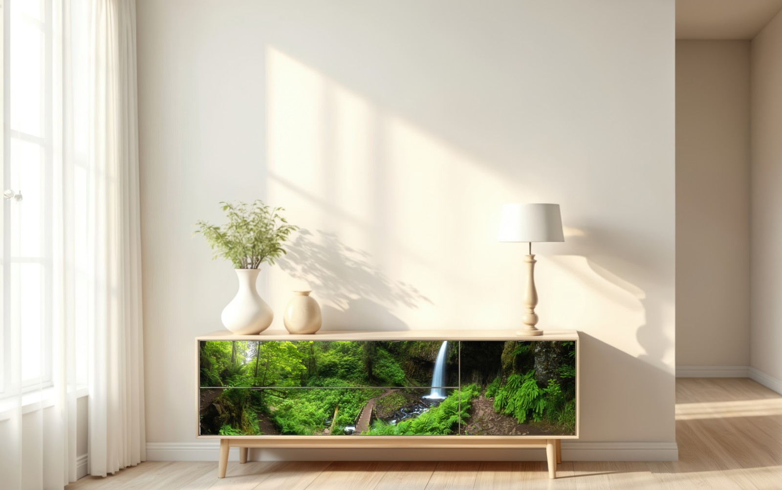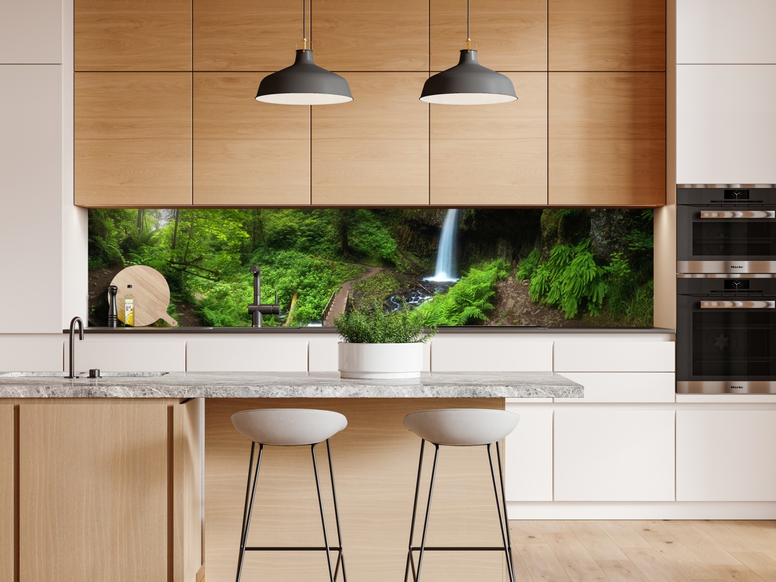 Repositionierbarer Aufkleber Üppiger waldwasserfall panorama