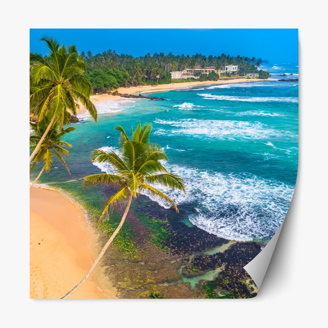 Repositionierbarer Aufkleber Türkisfarbene tropische küste mit palmen
