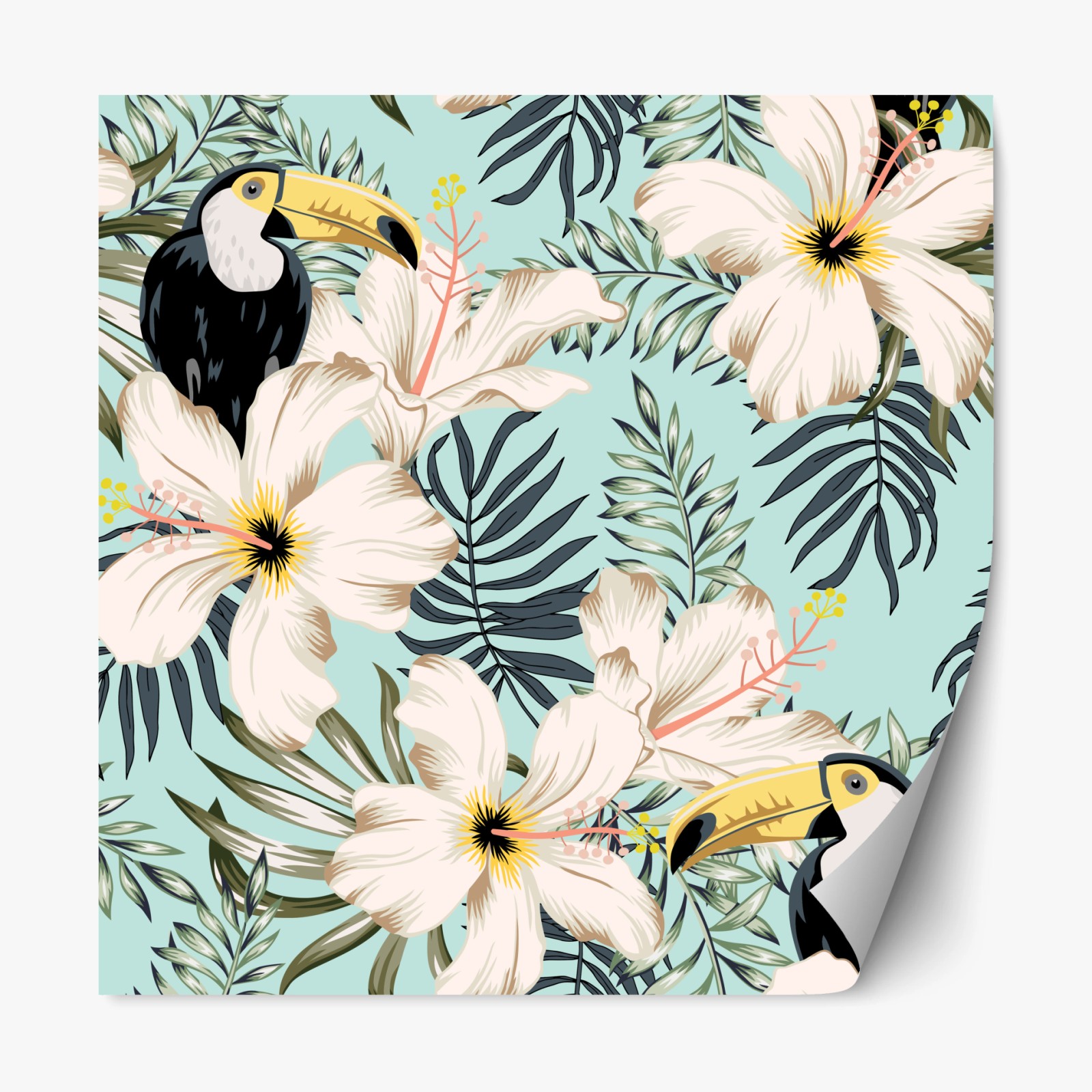Repositionierbarer Aufkleber Tropisches muster mit tukan und blumen