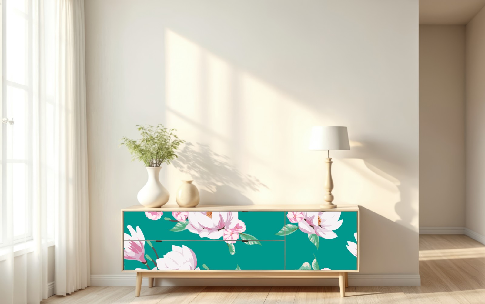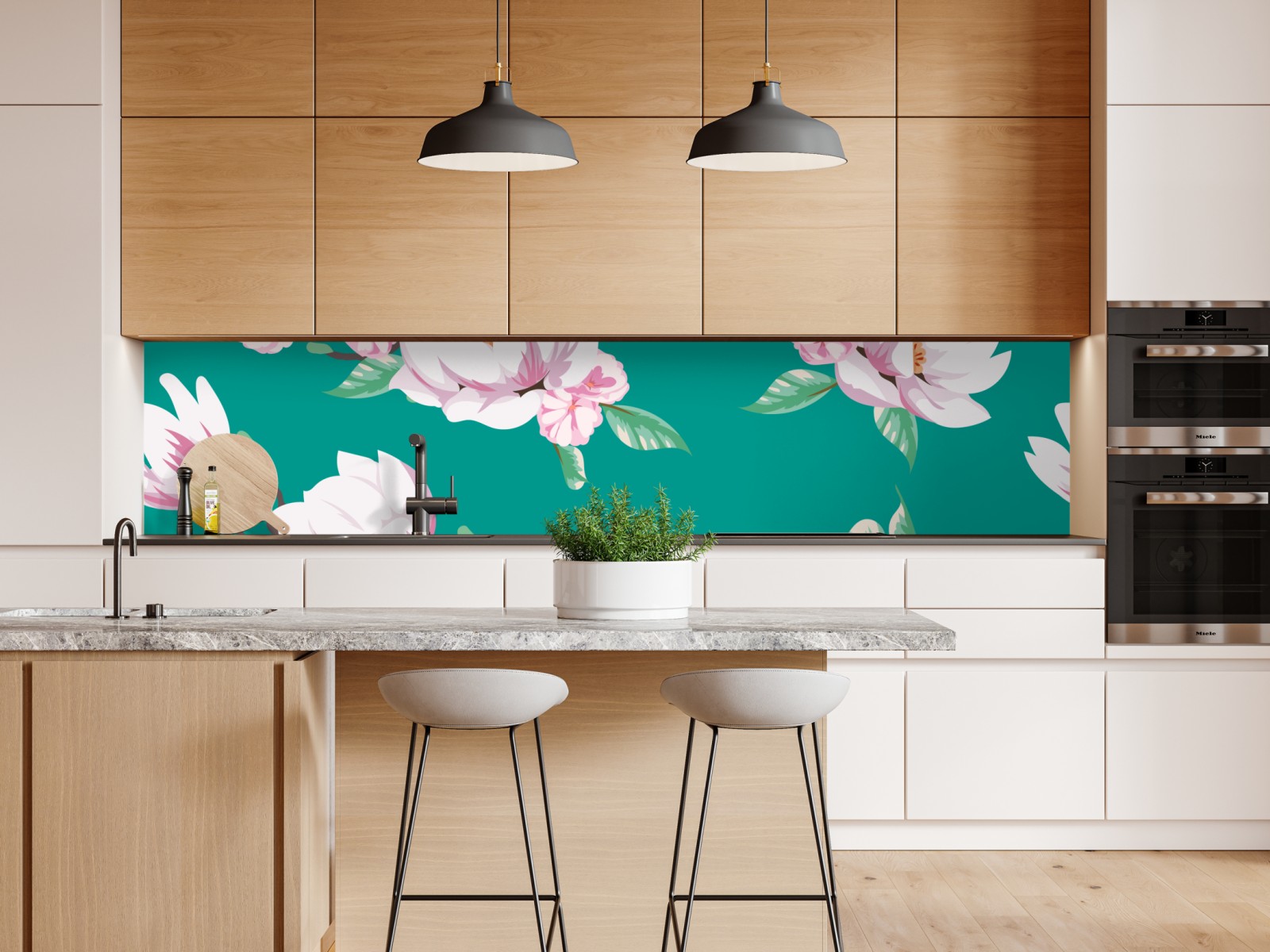 Repositionierbarer Aufkleber Pastell magnolienmuster auf türkisfarbenem hintergrund