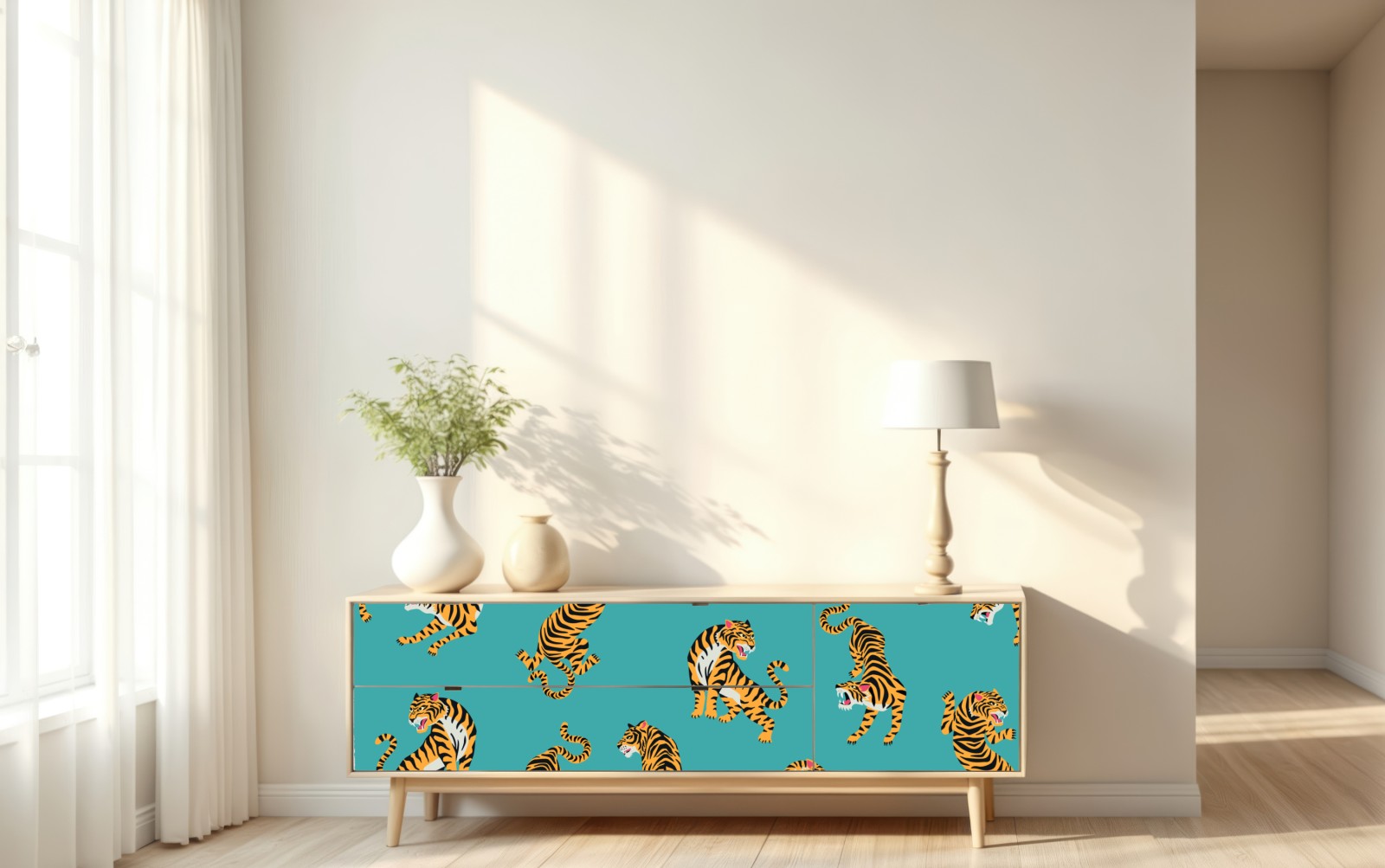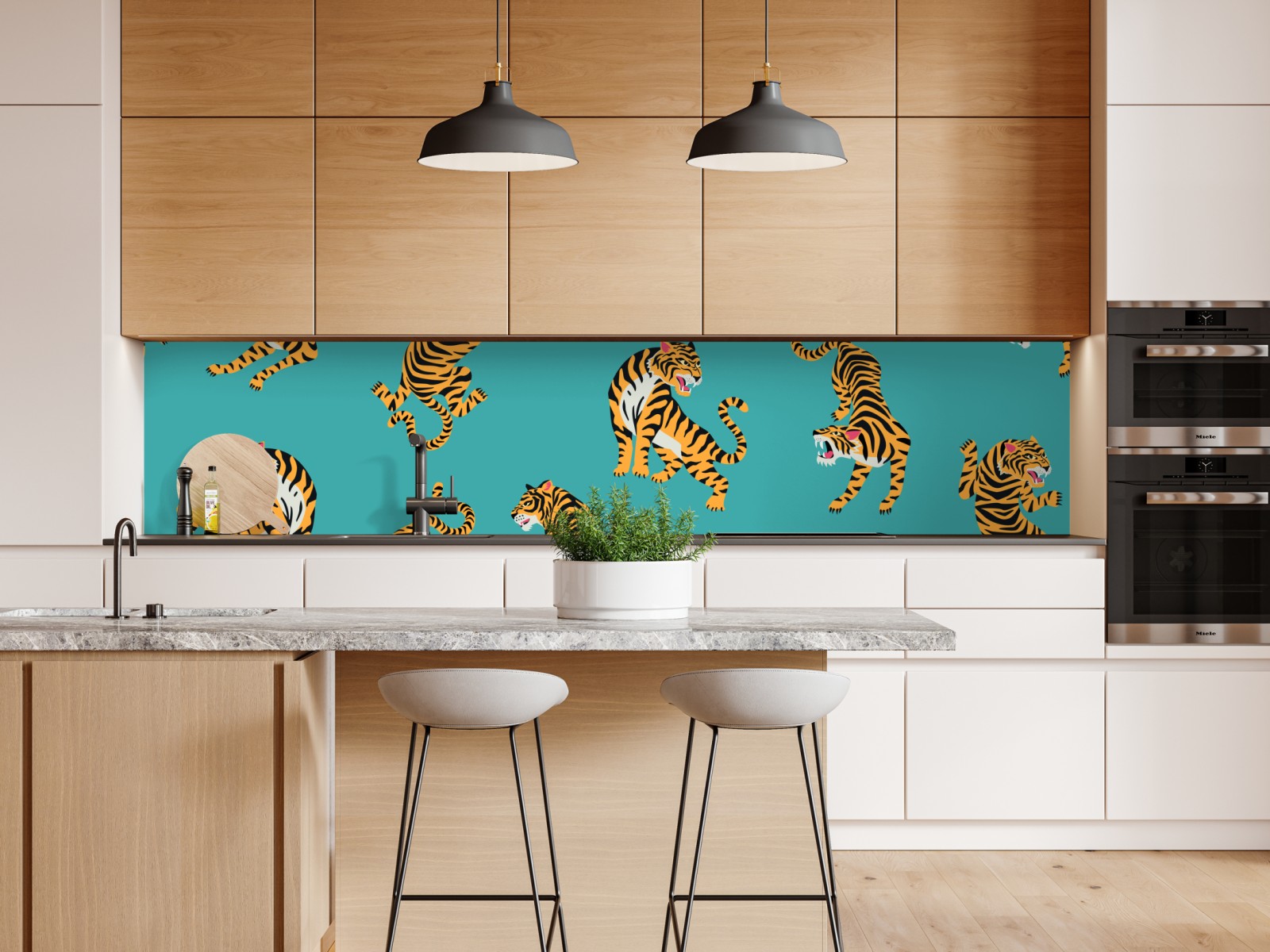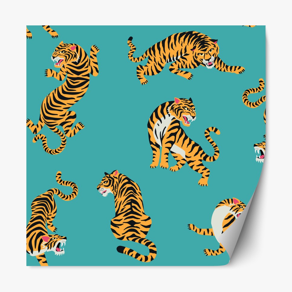 Repositionierbarer Aufkleber Stilisiertes tigermuster auf türkisfarbenem hintergrund