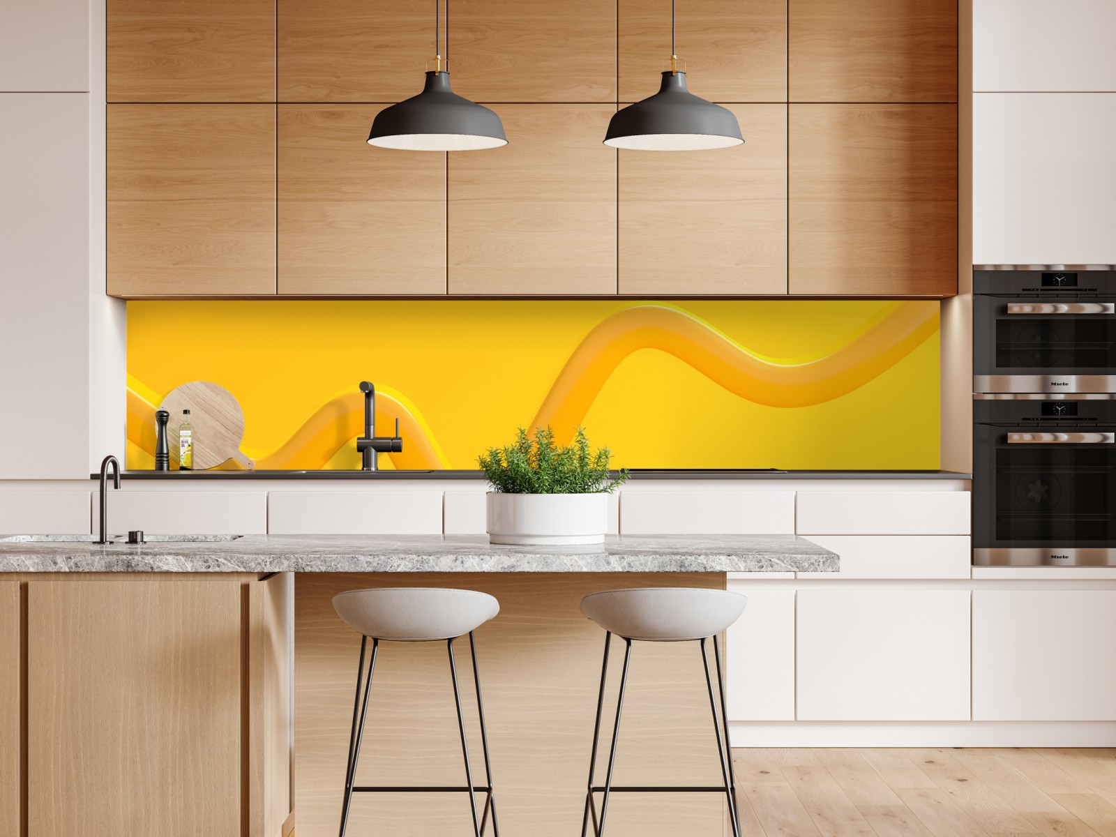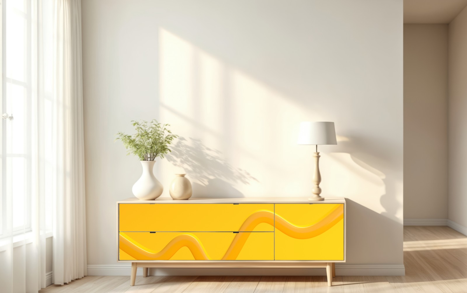 Repositionierbarer Aufkleber Sonnige gelbe 3d-abstrakte kurve