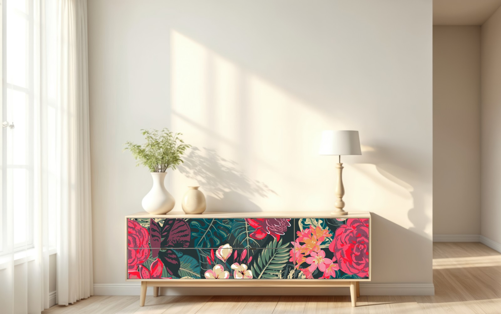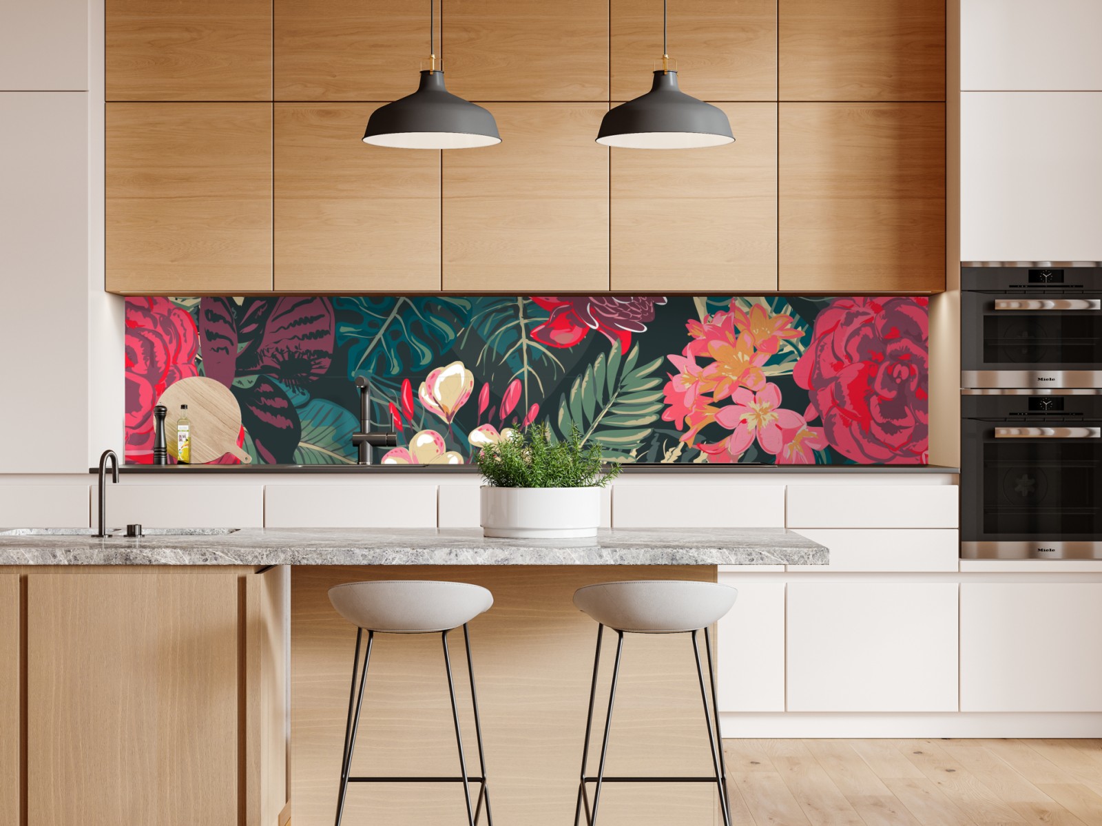 Repositionierbarer Aufkleber Tropisches blumenmuster in rosa und türkis