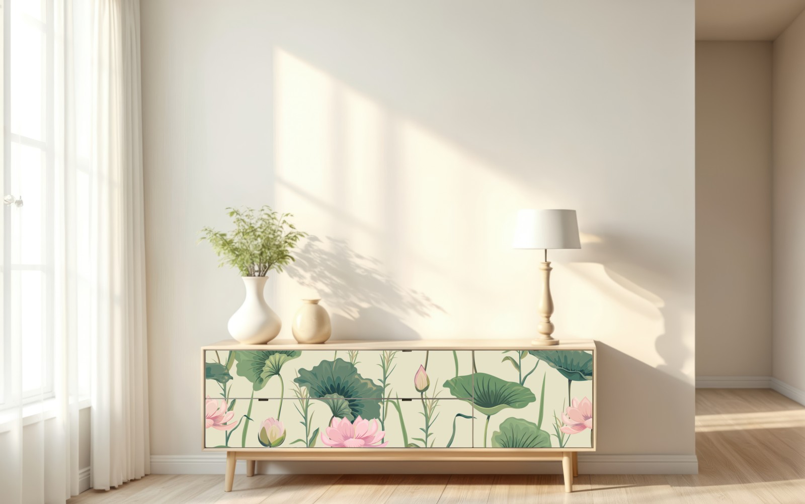 Repositionierbarer Aufkleber Sanfter lotusgarten botanisches muster