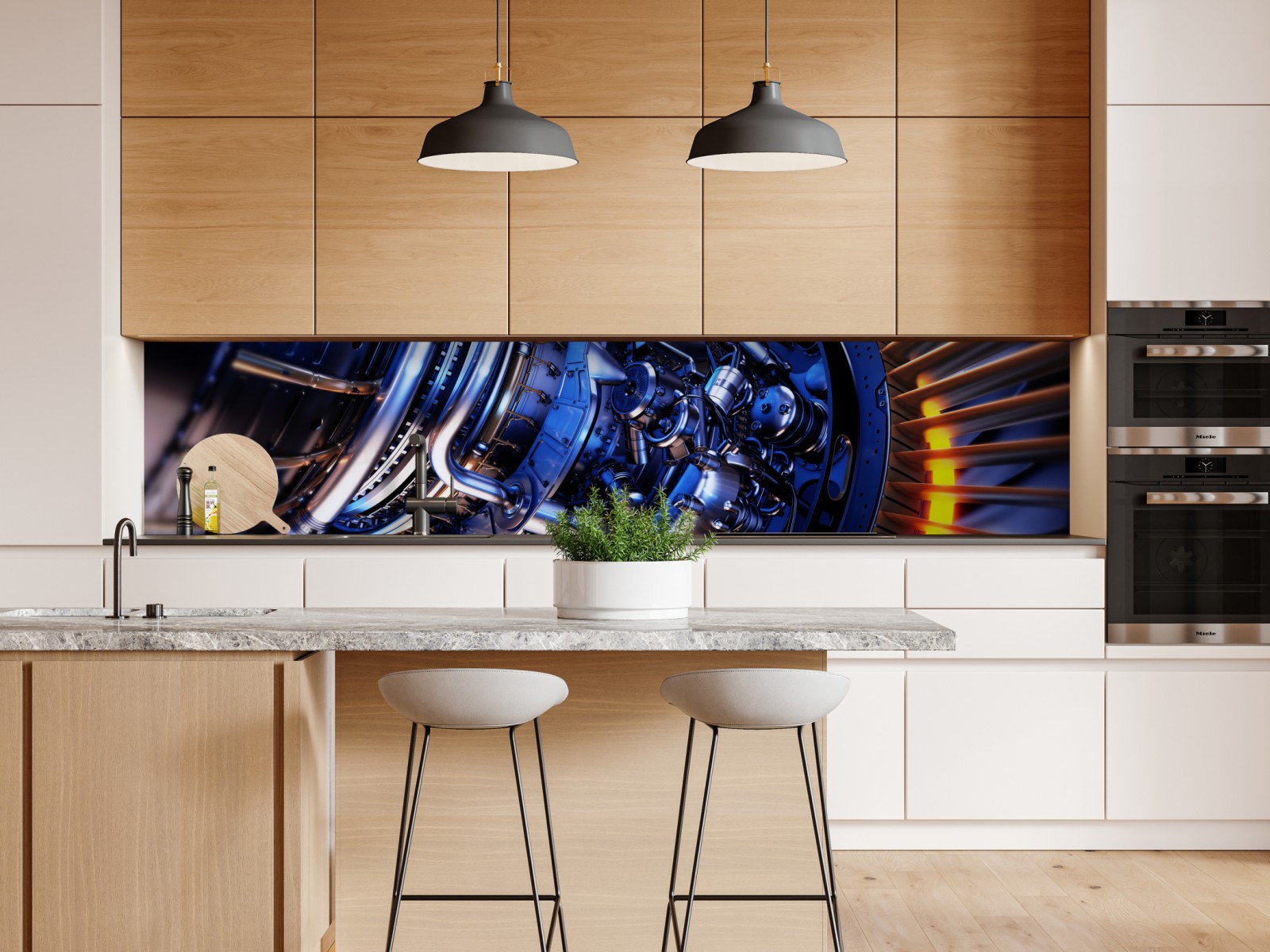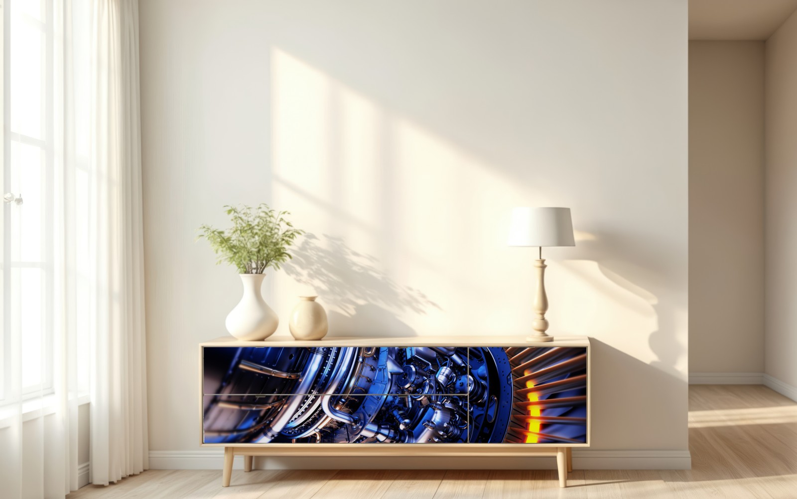 Repositionierbarer Aufkleber Nahaufnahme einer turbinenanlage in blau und orange