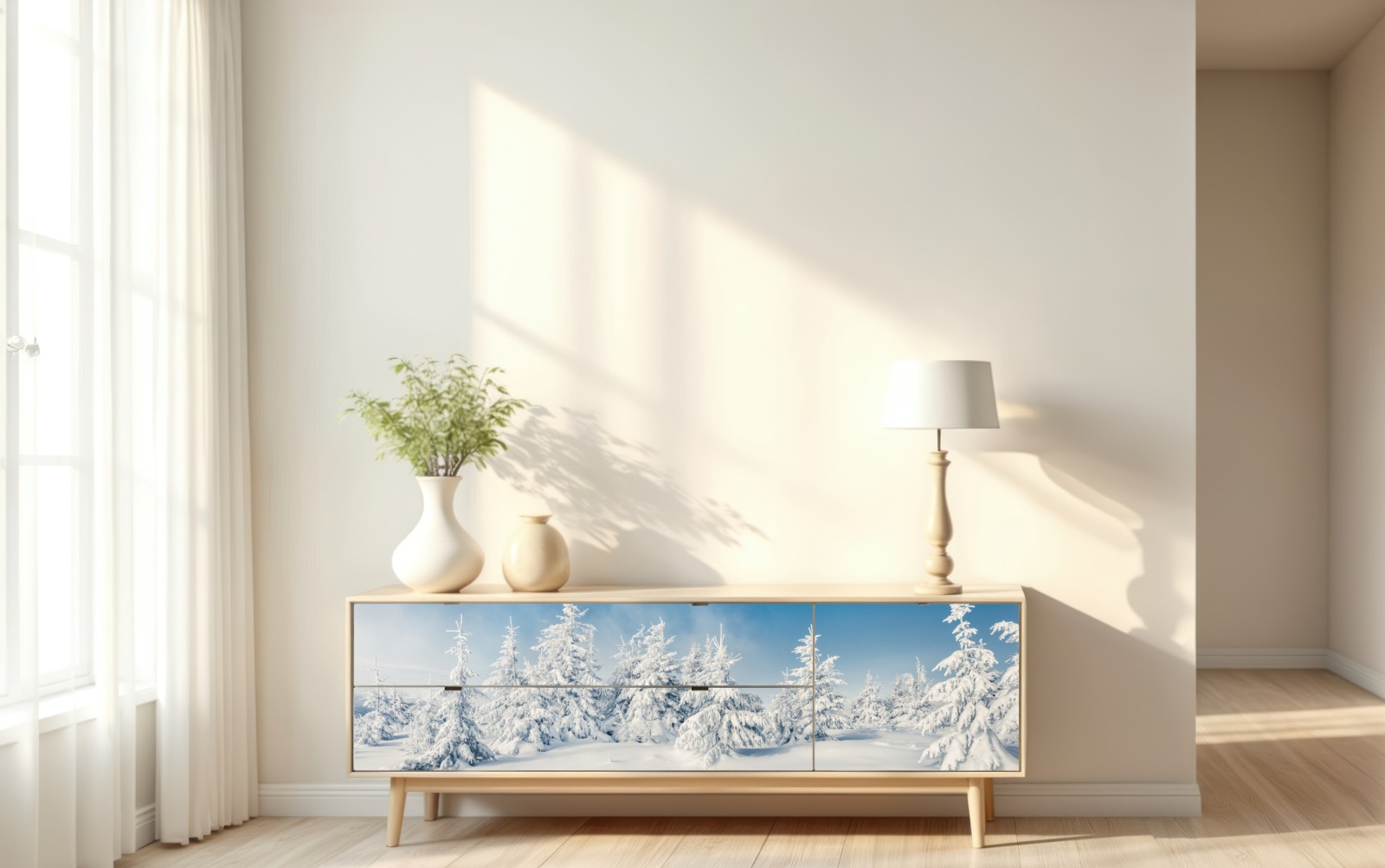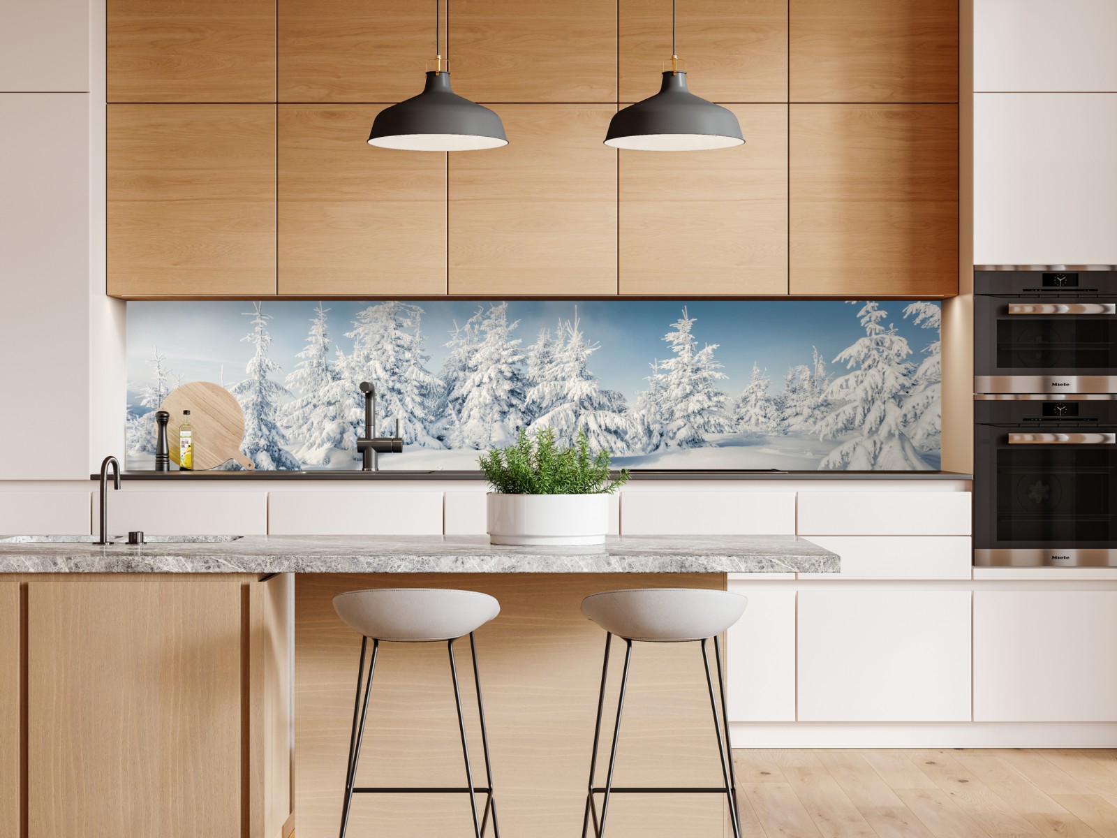 Repositionierbarer Aufkleber Panorama verschneiten waldes