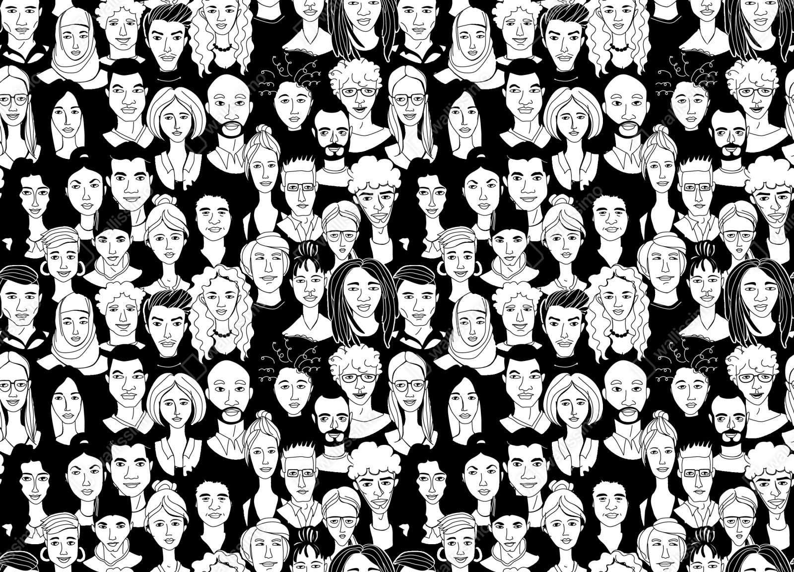 Repositionierbarer Aufkleber Muster mit vielfältigen gesichtern