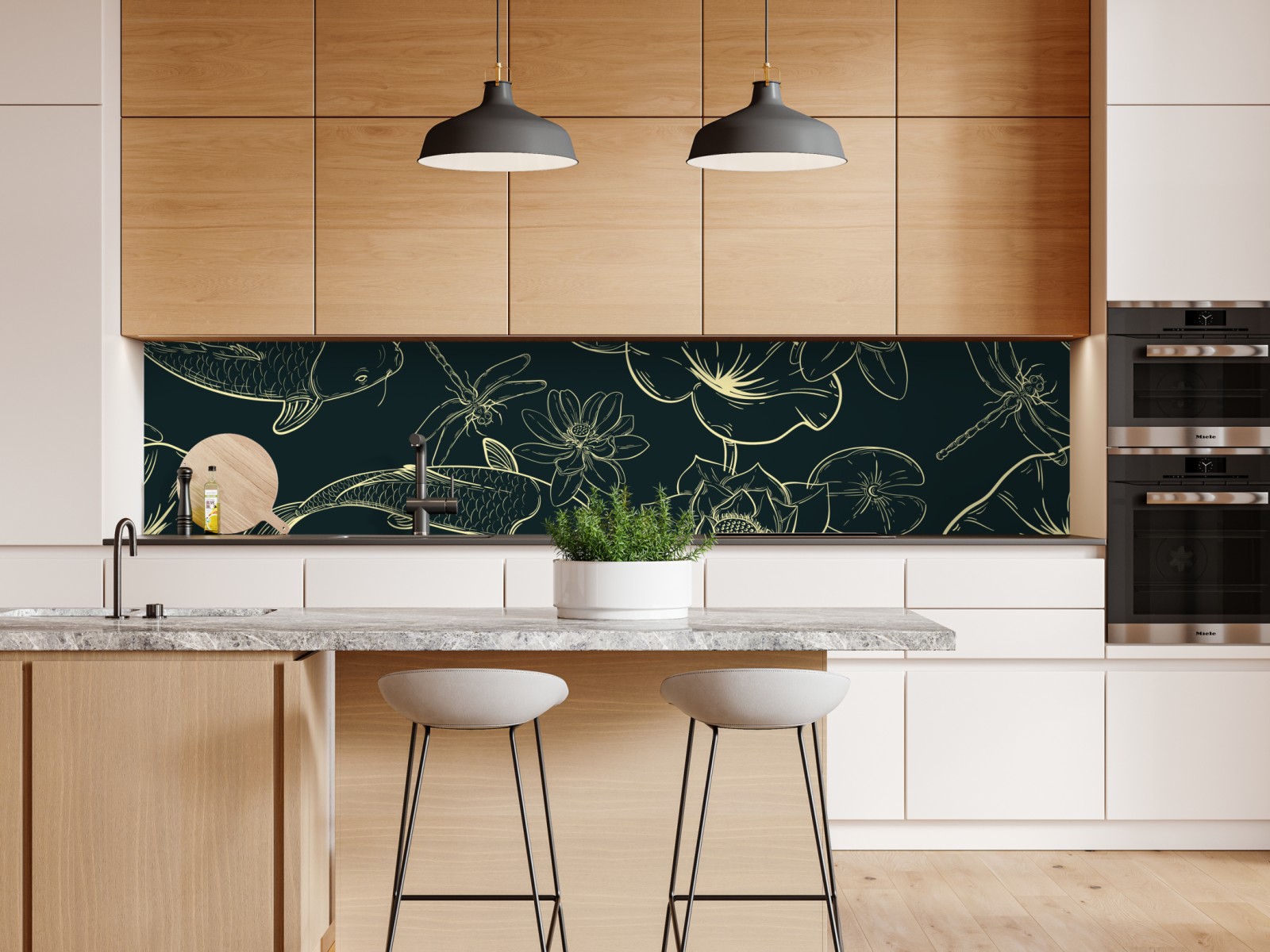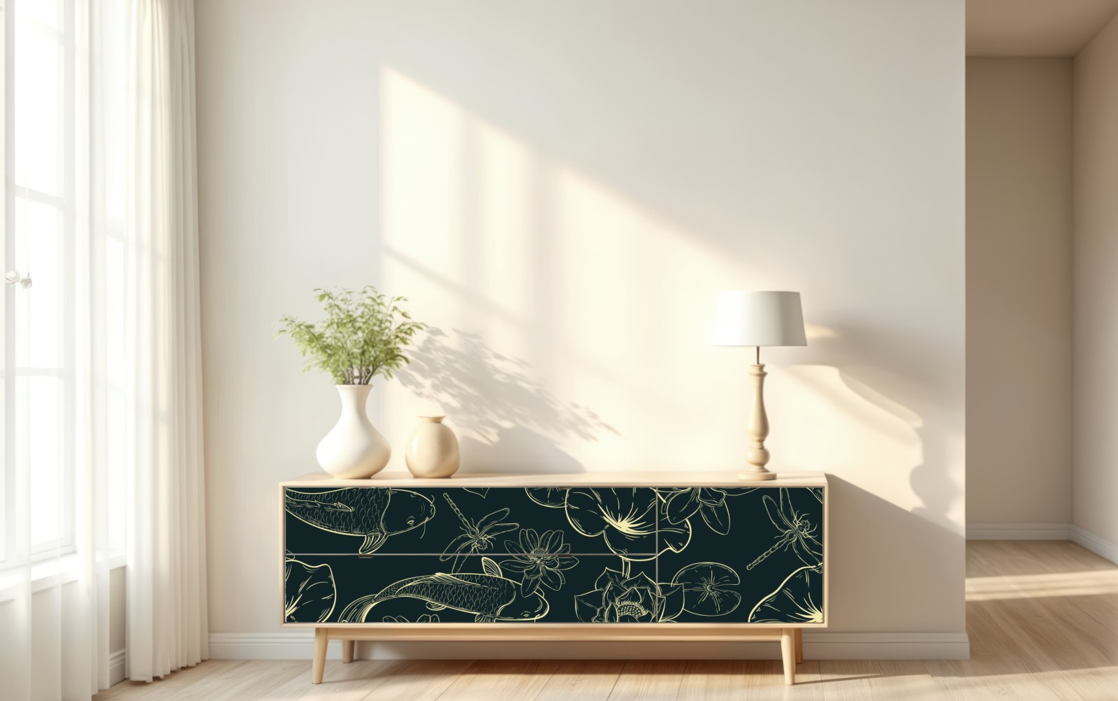 Repositionierbarer Aufkleber Handgezeichnetes koi- und lotusmuster