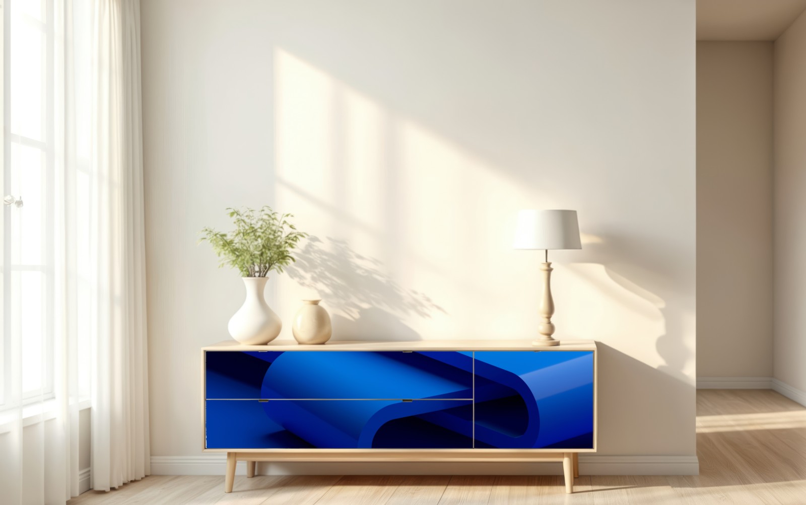 Repositionierbarer Aufkleber Minimalistische blaue geometrische schleife