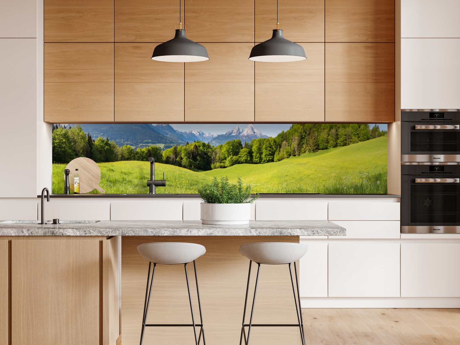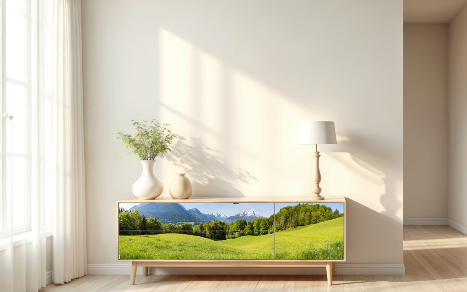 Repositionierbarer Aufkleber Ruhiges alpines wiesenpanorama