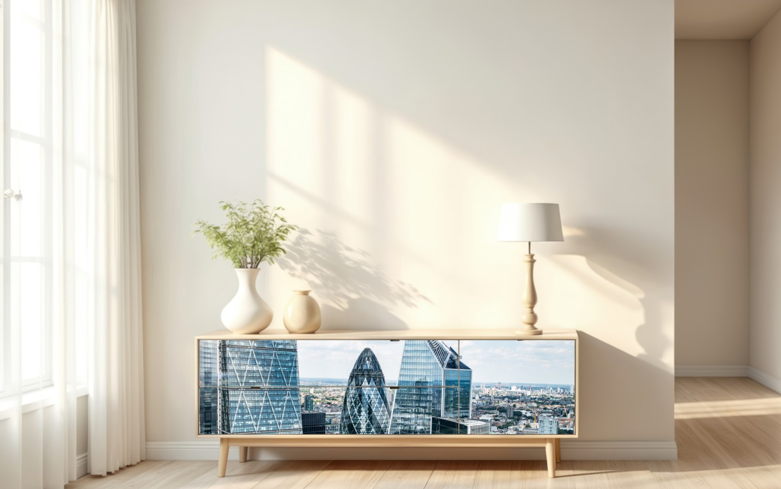 Repositionierbarer Aufkleber Moderne London skyline mit gläsernen wolkenkratzern