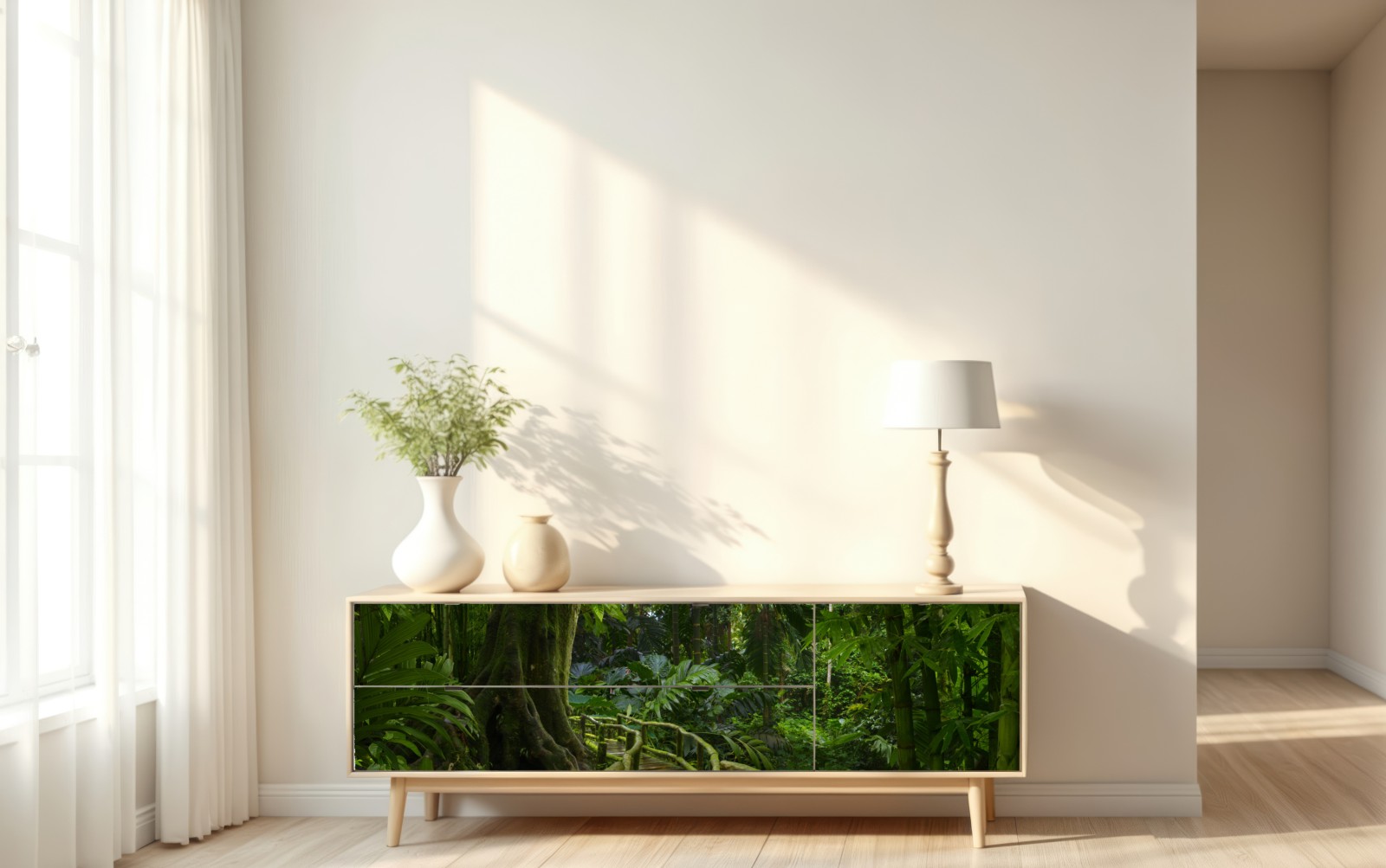 Repositionierbarer Aufkleber Ruhiger dschungelsteg durch üppigen regenwald