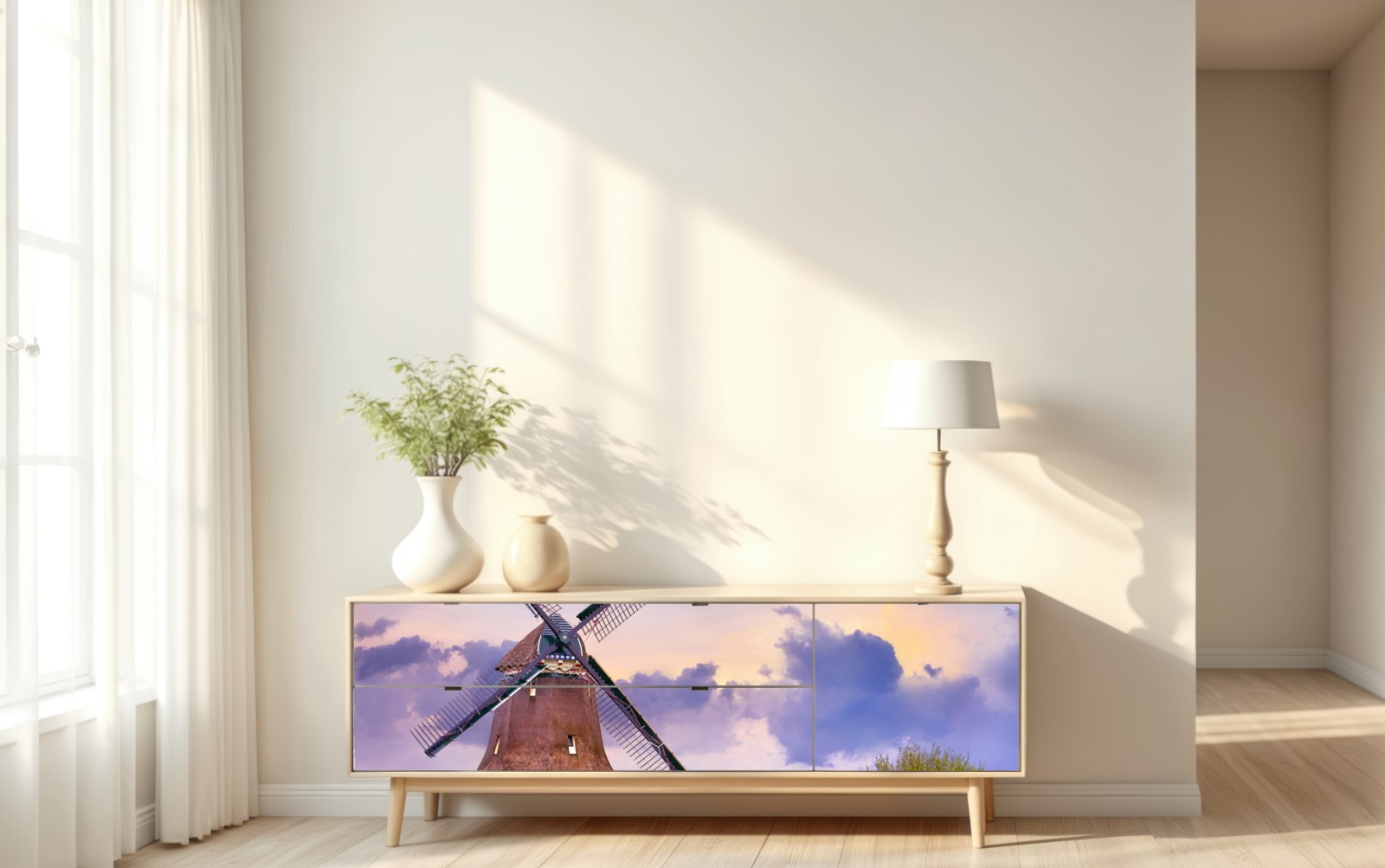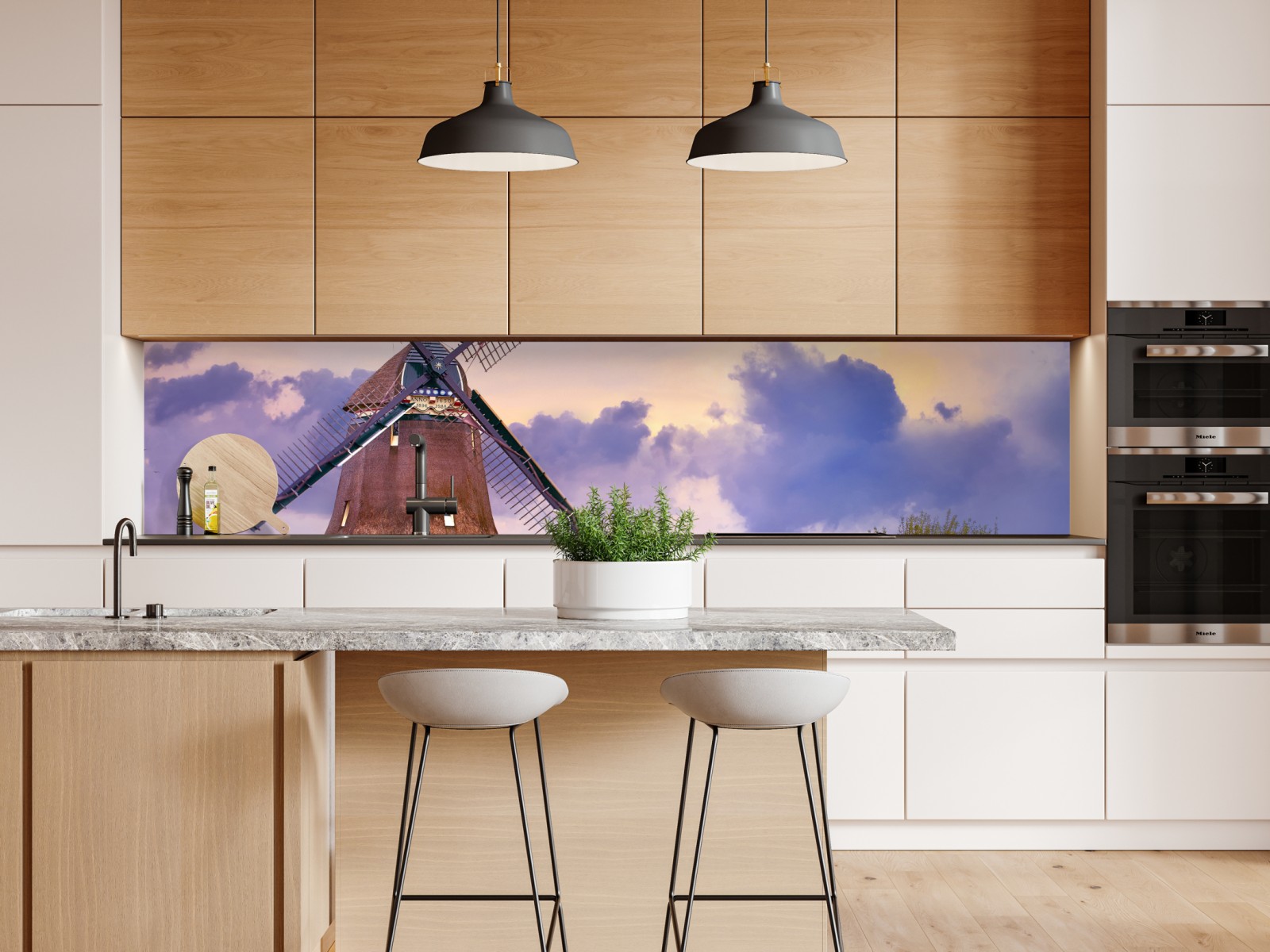 Repositionierbarer Aufkleber Historische windmühle auf goldenen feldern