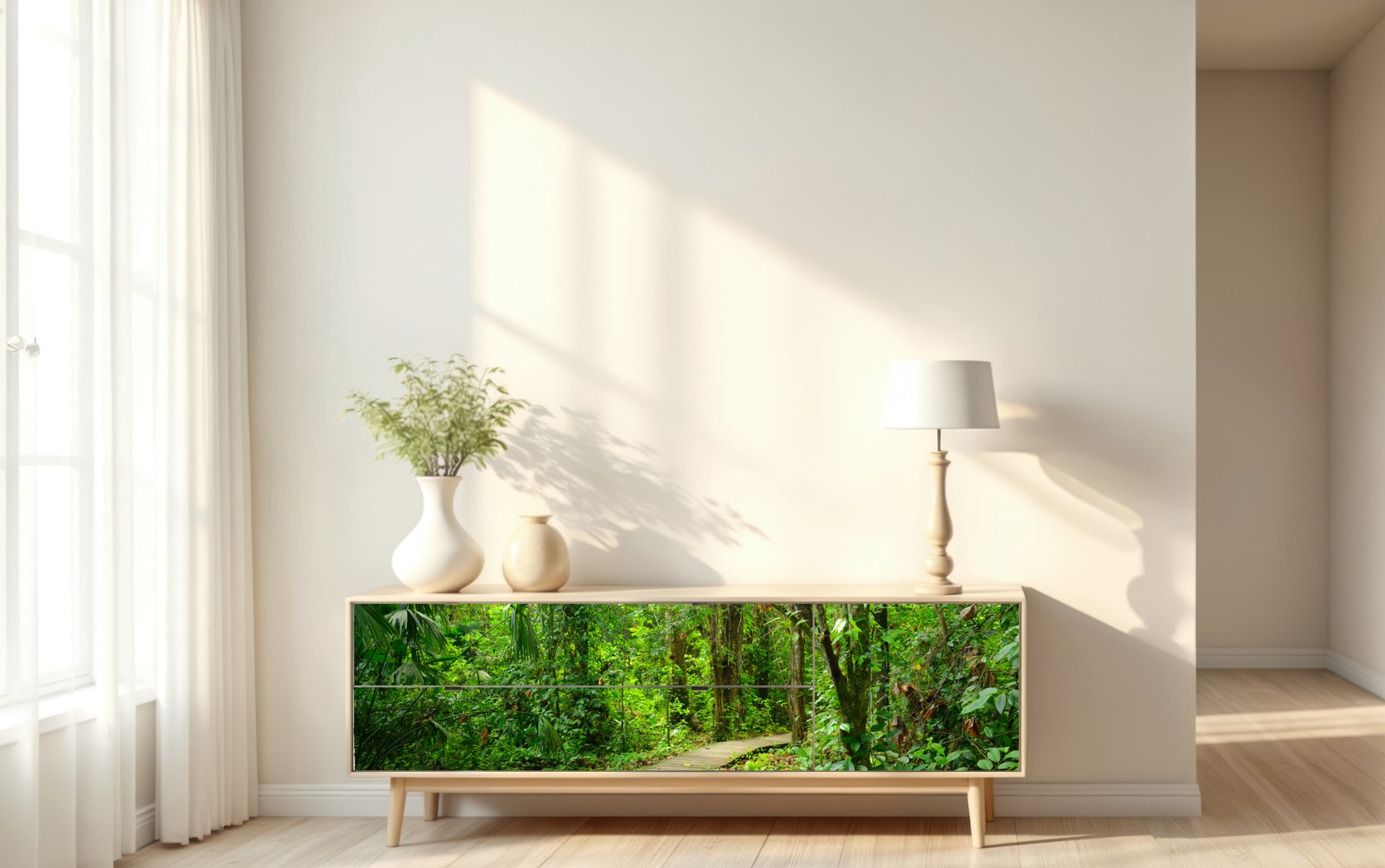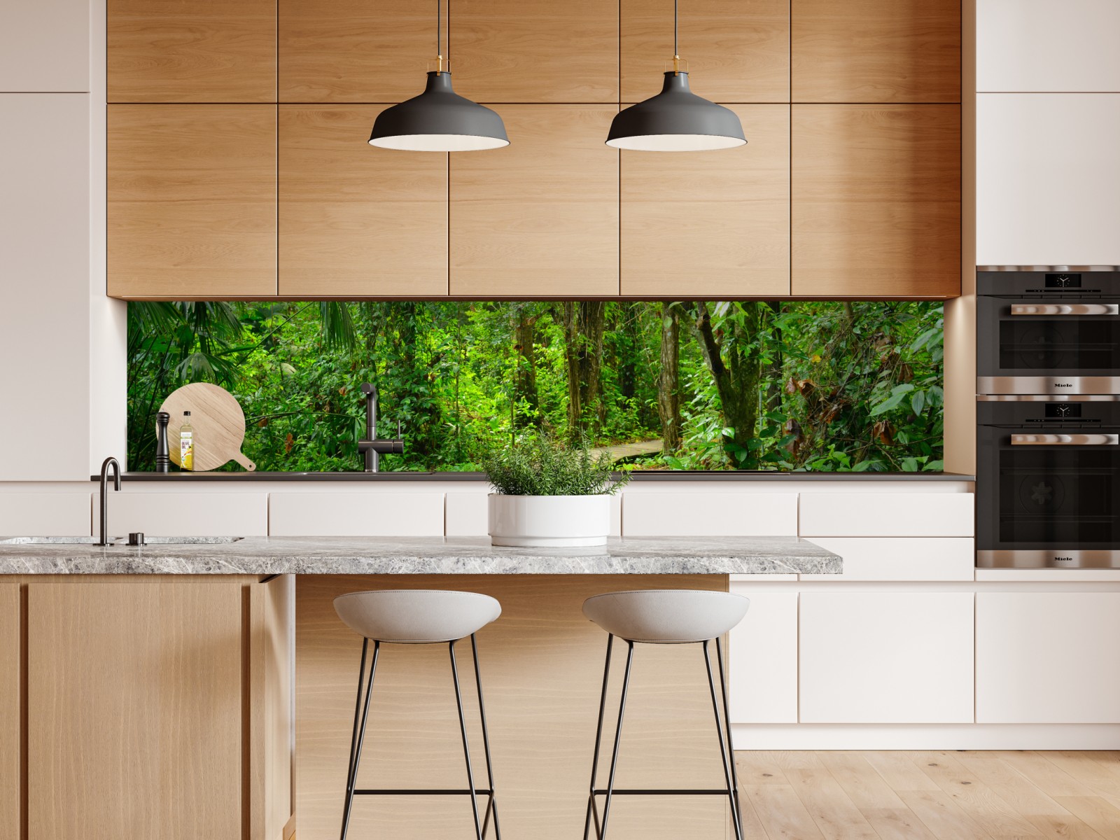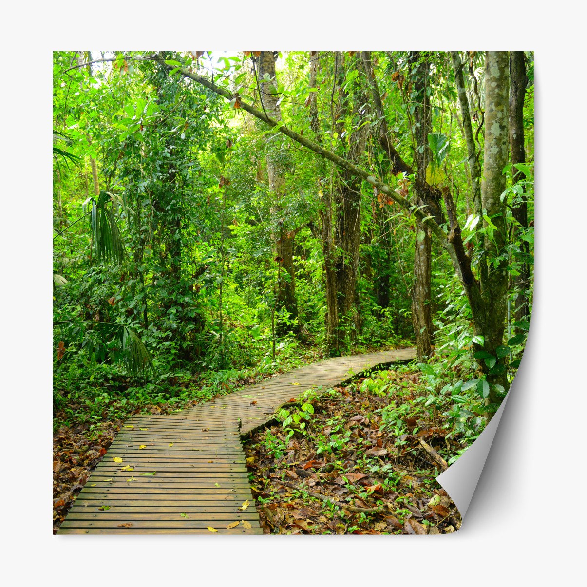 Repositionierbarer Aufkleber Tropischer steg im üppigen wald