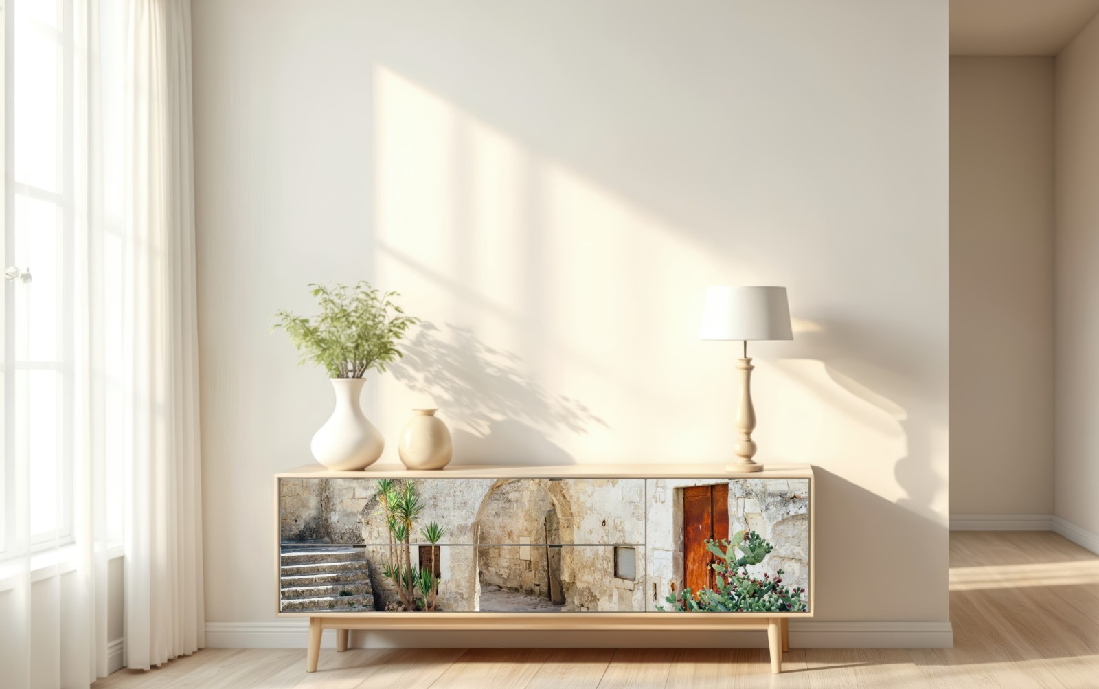 Repositionierbarer Aufkleber Mediterraner steinhof mit bogen