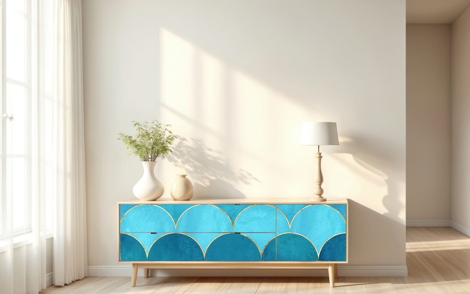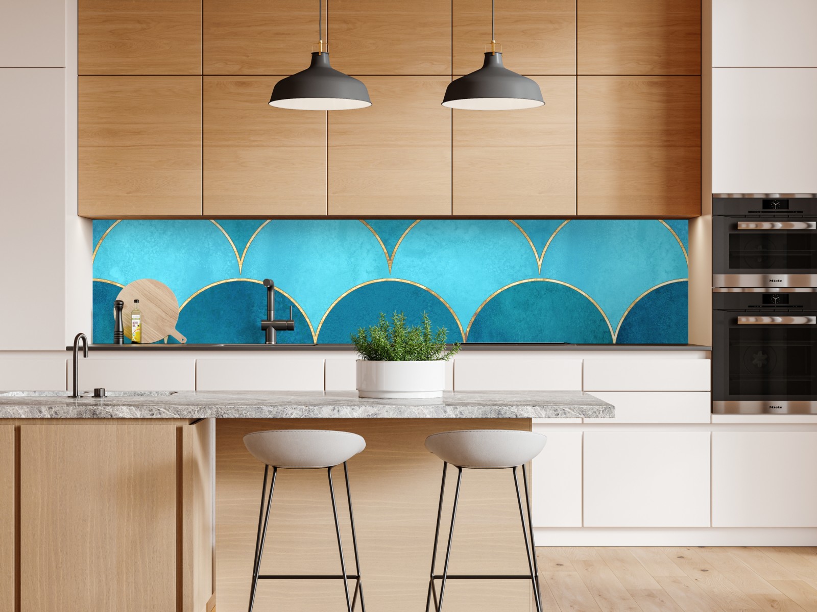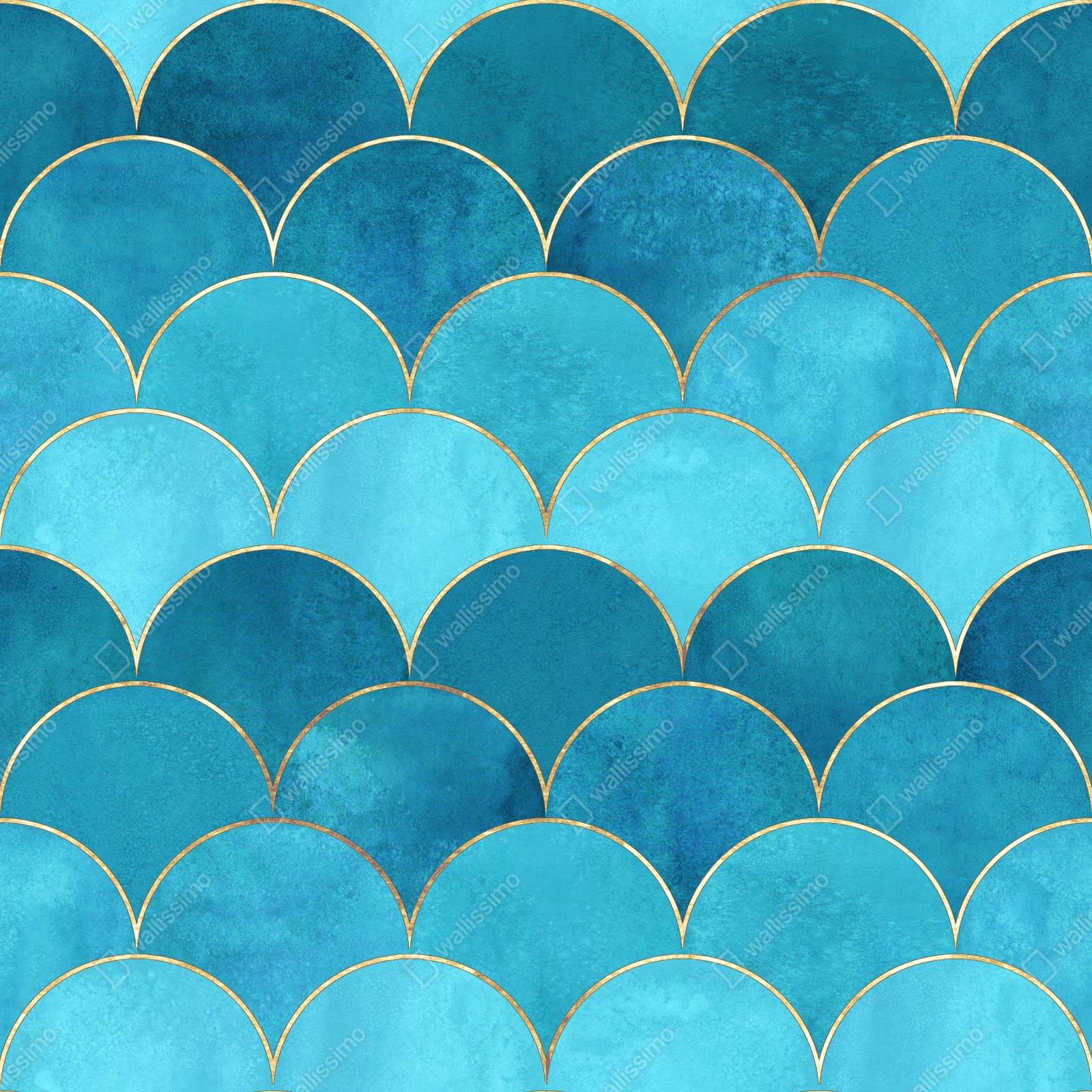 Repositionierbarer Aufkleber Türkis schuppenmuster mit goldakzenten