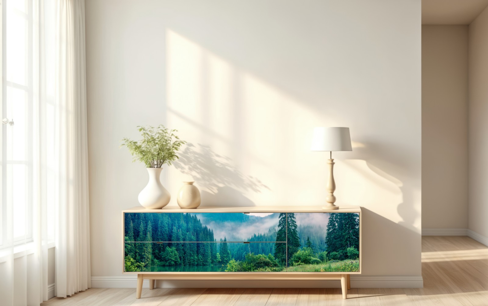 Repositionierbarer Aufkleber Nebliger morgen am Lacu Roșu