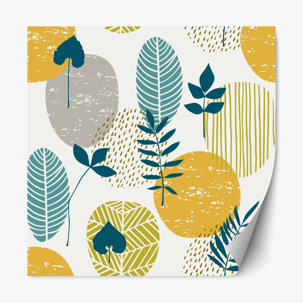 Repositionierbarer Aufkleber Türkis-senfgelbes botanisches muster