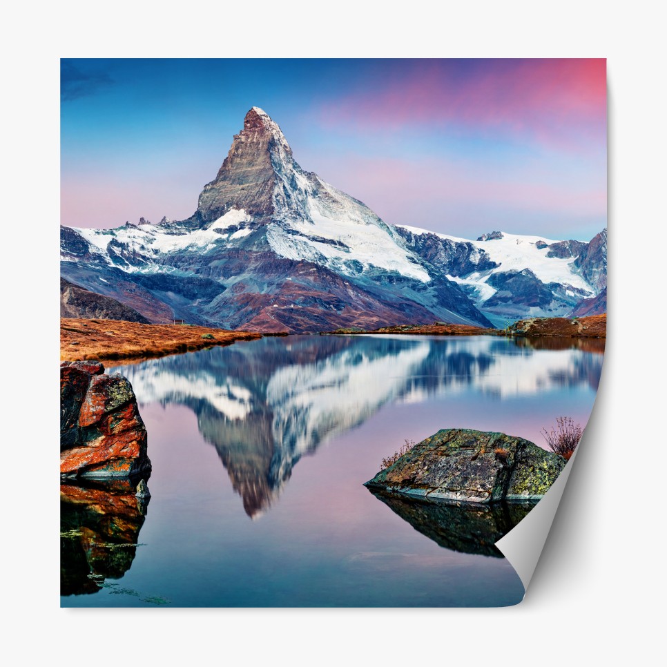 Repositionierbarer Aufkleber Spiegelung am Matterhorn bei sonnenaufgang