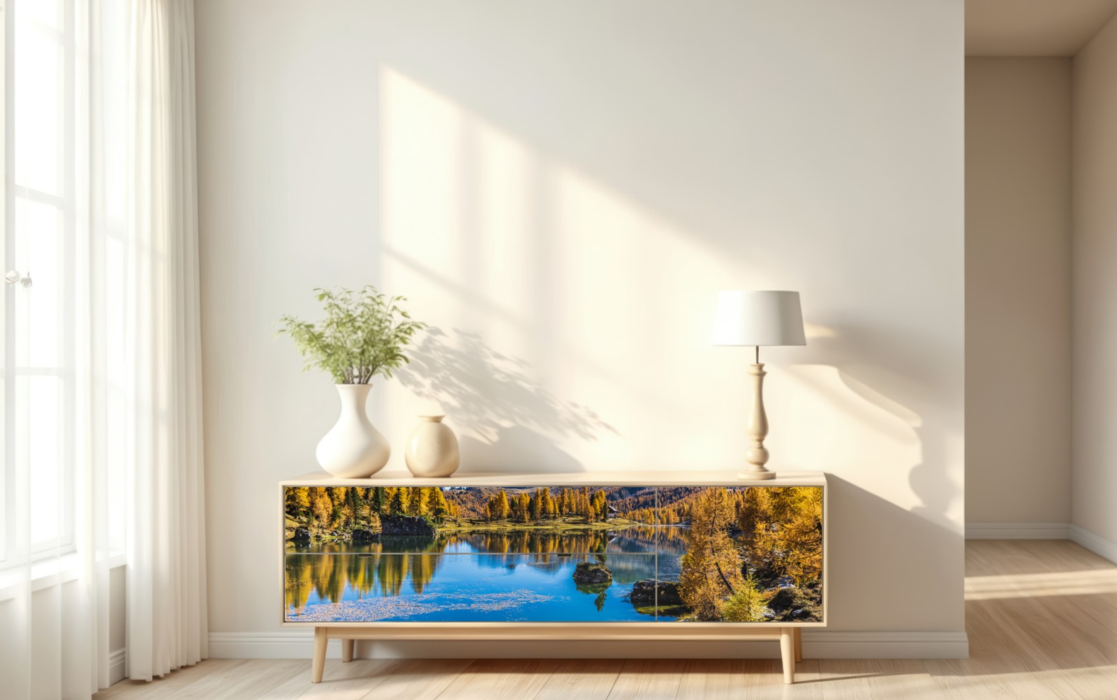 Repositionierbarer Aufkleber Herbstlicher alpensee mit bergreflexion