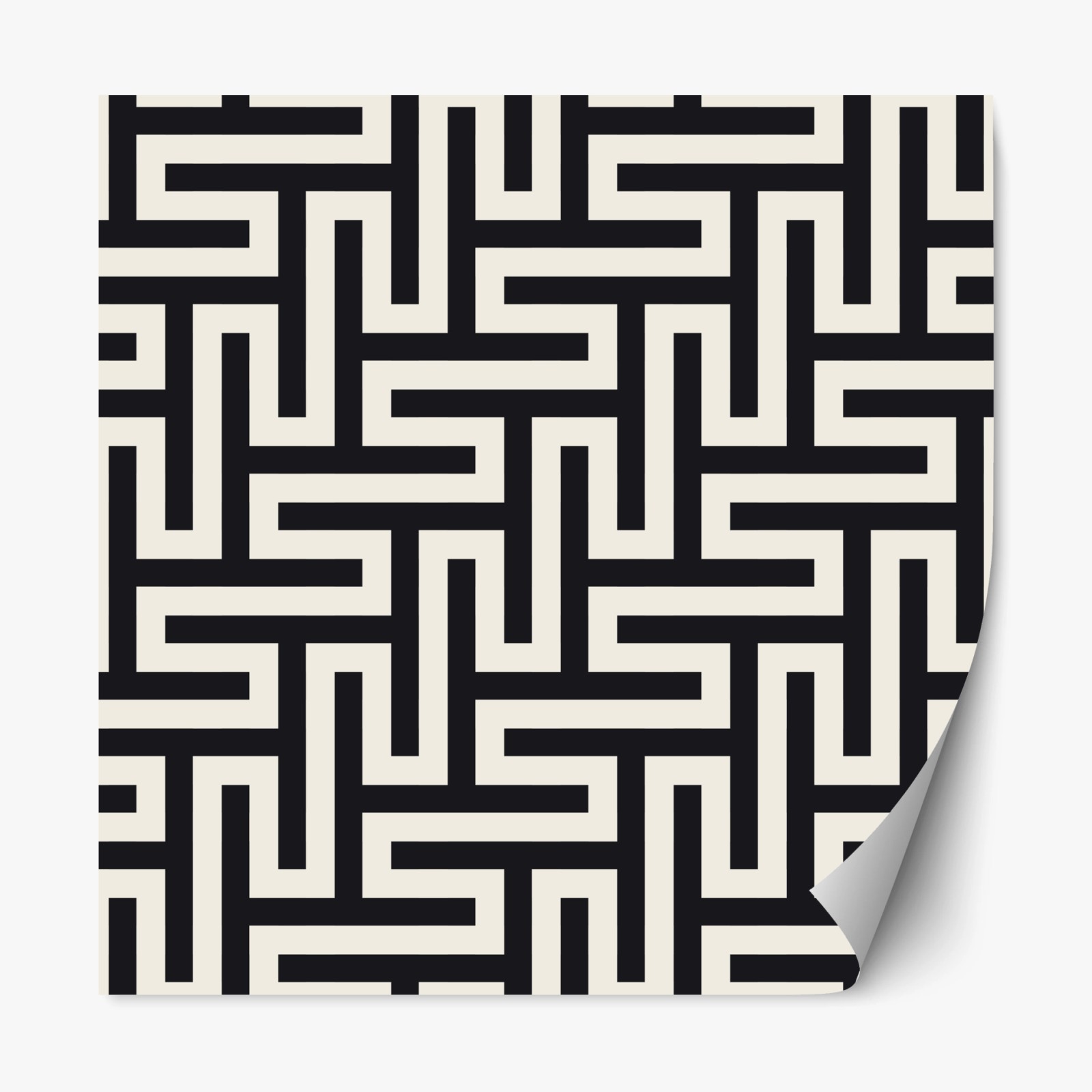 Repositionierbarer Aufkleber Geometrisches labyrinthmuster in beige und schwarz