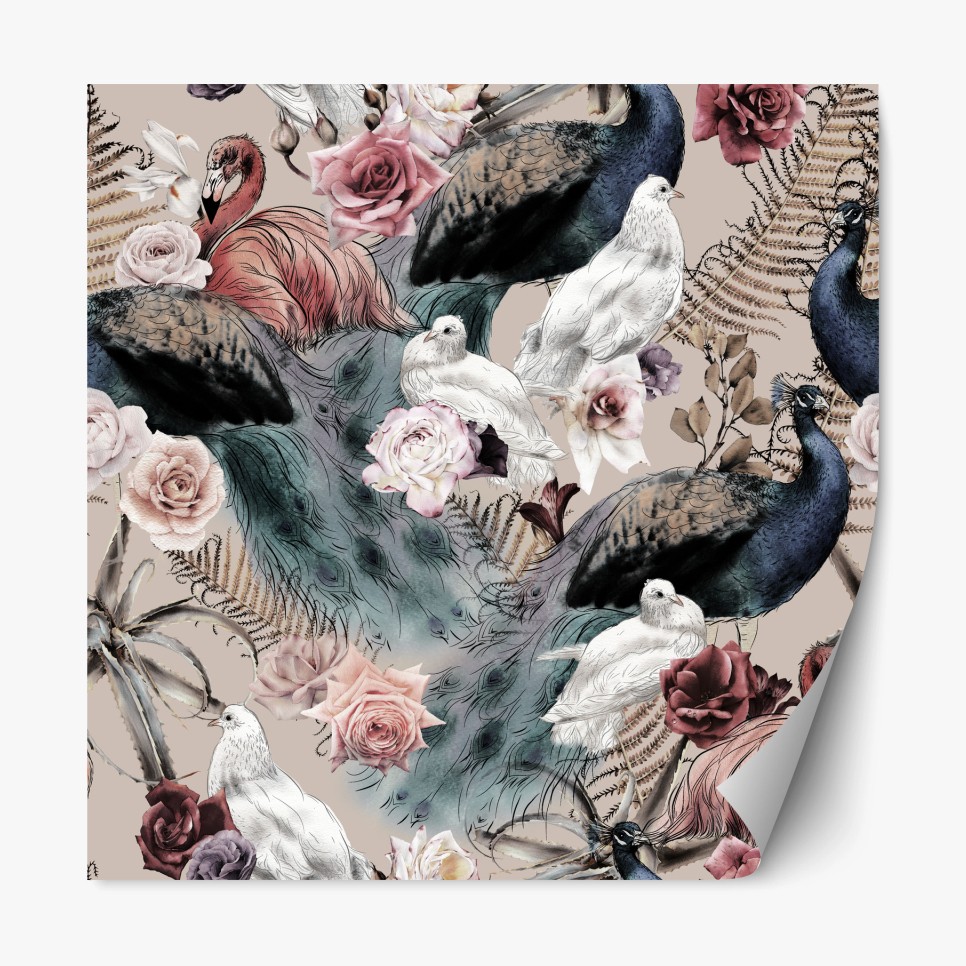Repositionierbarer Aufkleber Aquarellmuster mit vögeln und rosen