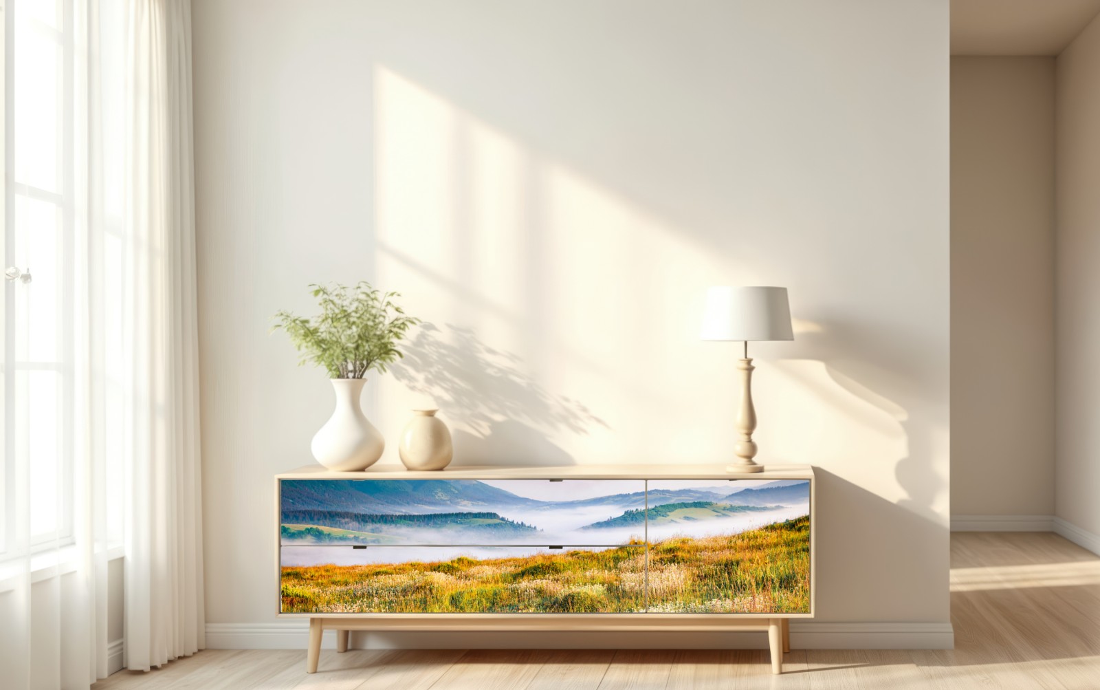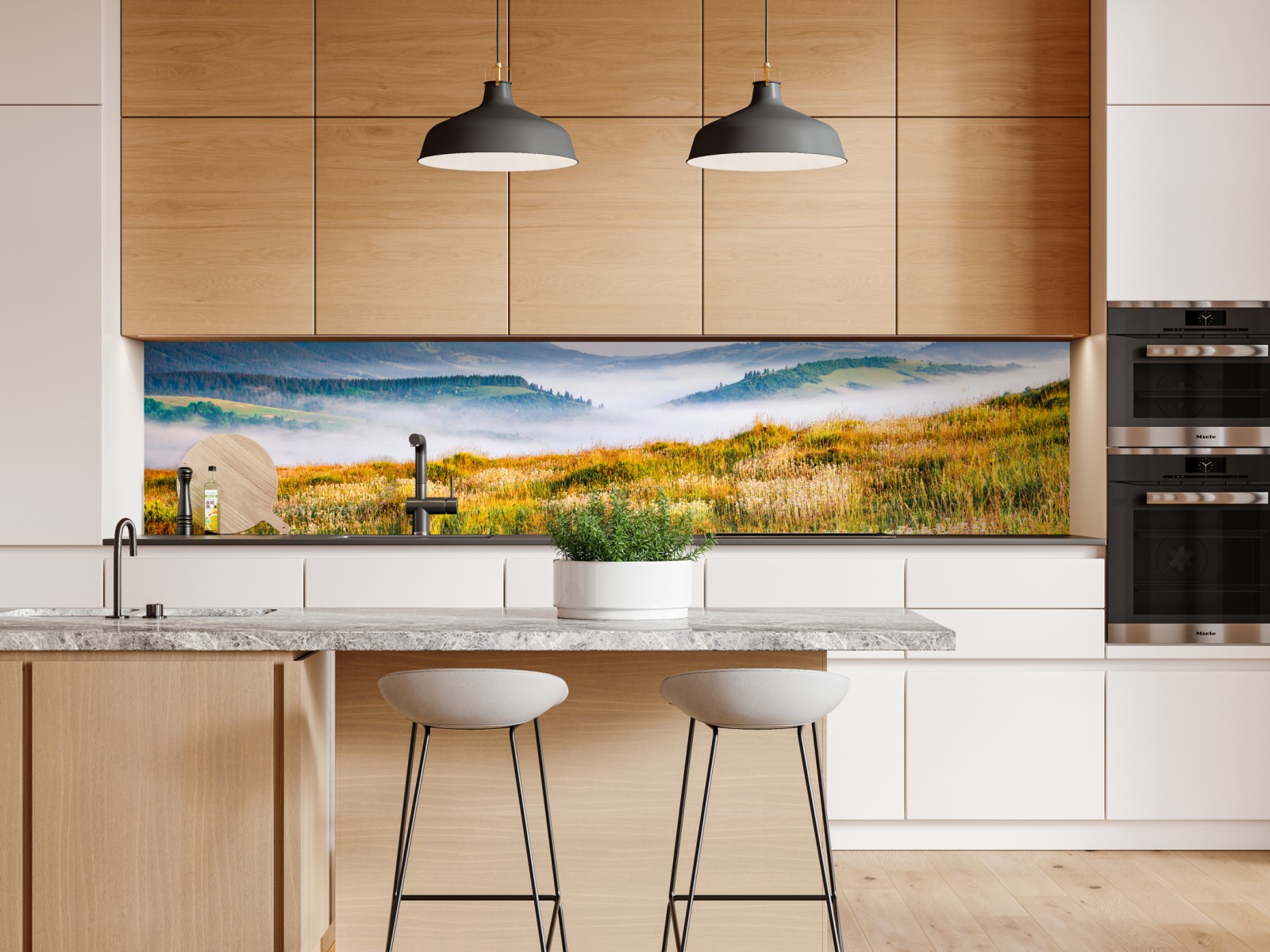 Repositionierbarer Aufkleber Nebliger morgen in den Karpaten