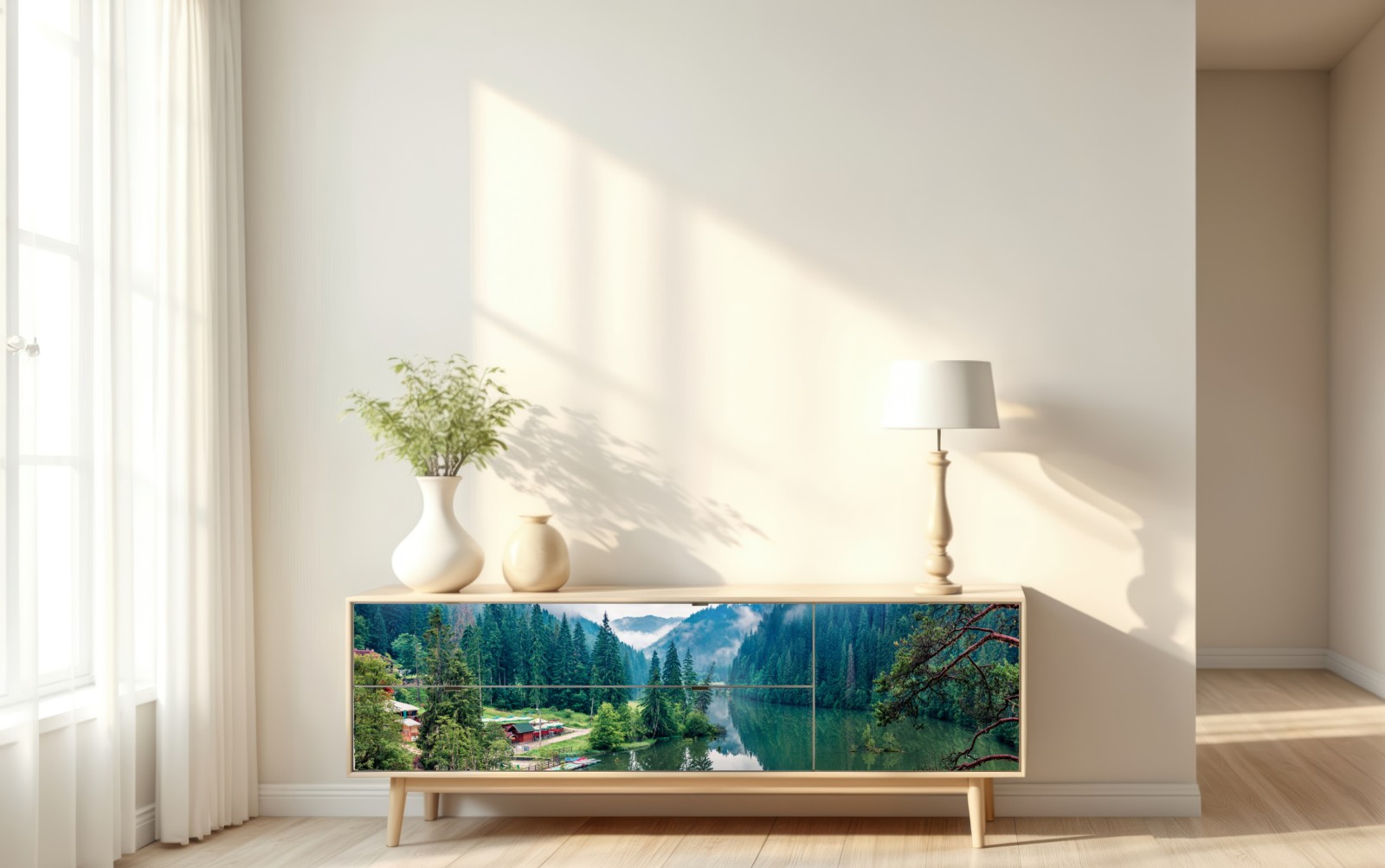Repositionierbarer Aufkleber Nebliger morgen am Lacu Rosu