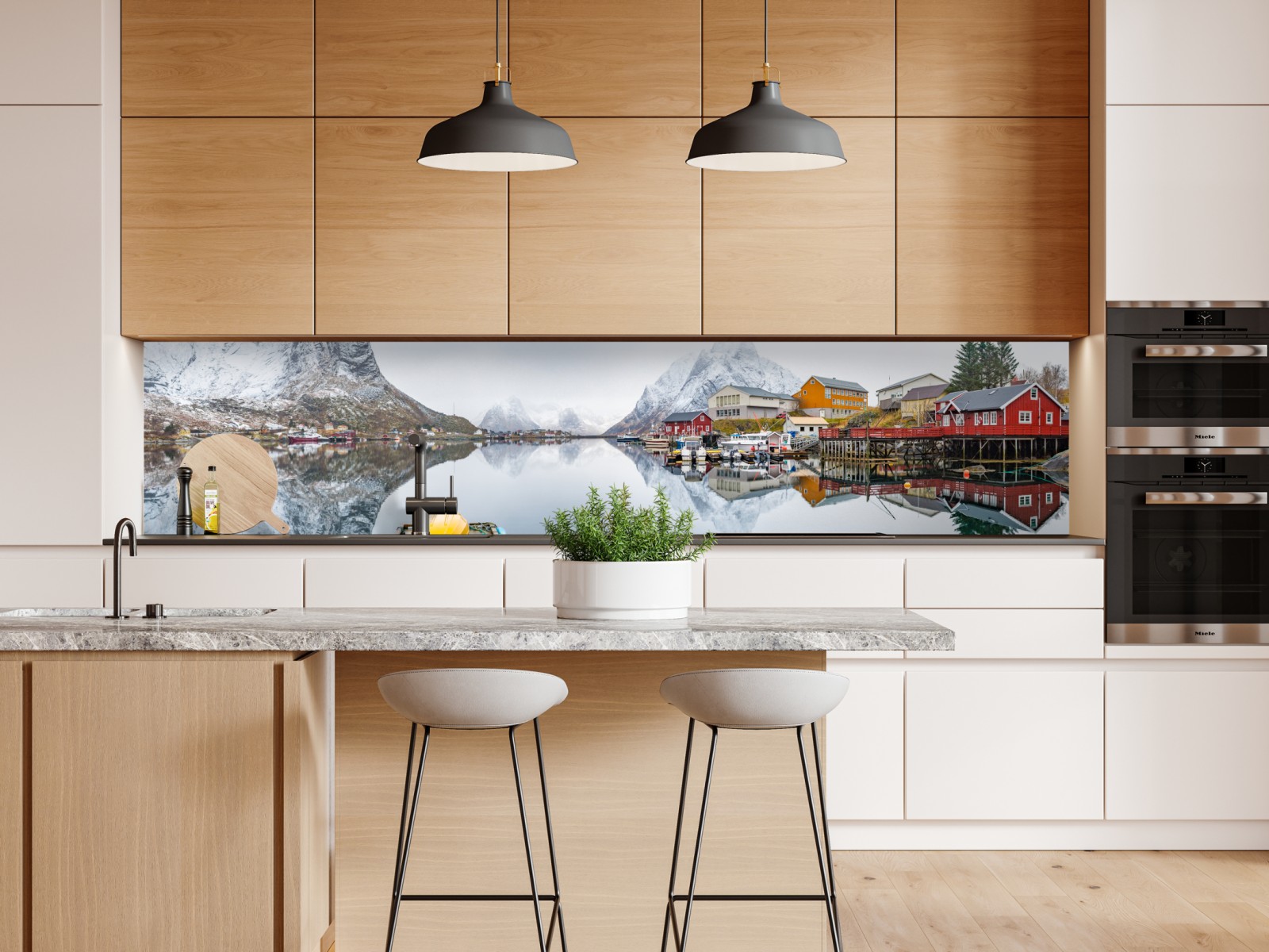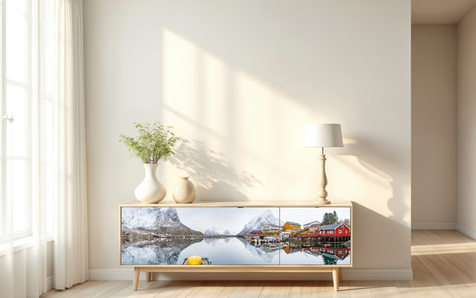 Repositionierbarer Aufkleber Spiegelglatter fjord mit bergkulisse