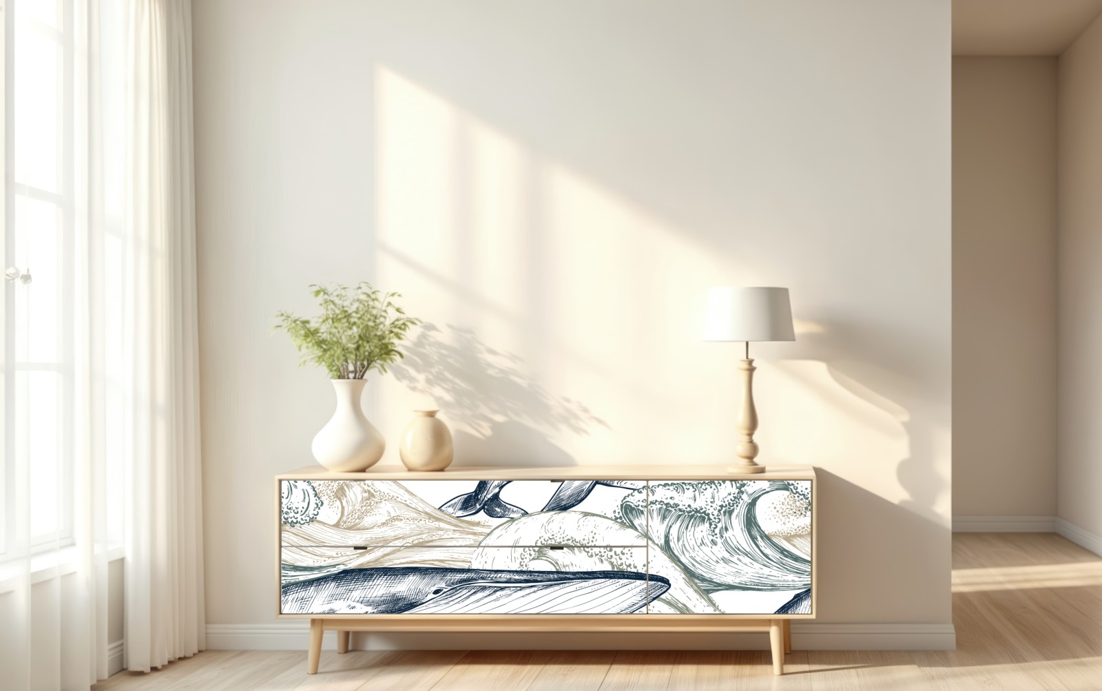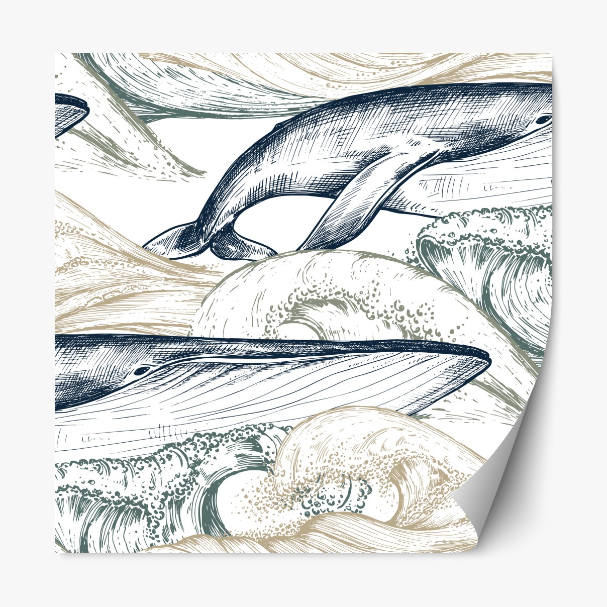 Repositionierbarer Aufkleber Handgezeichnete wale und ozeanwellen