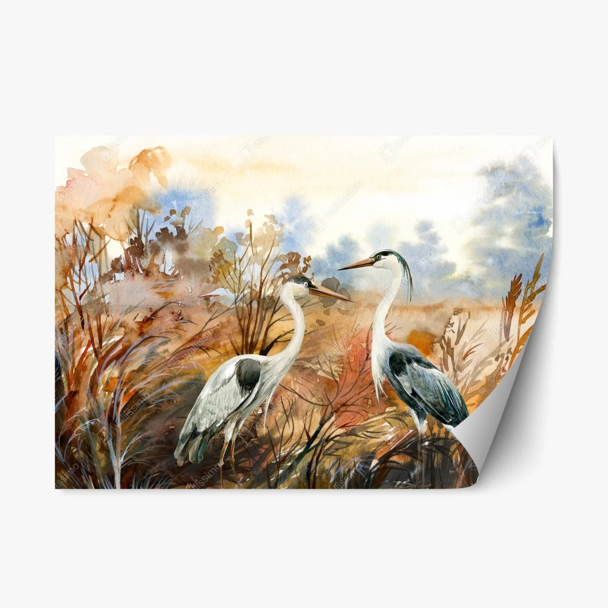 Repositionierbarer Aufkleber Zwei reiher im herbstlichen sumpf