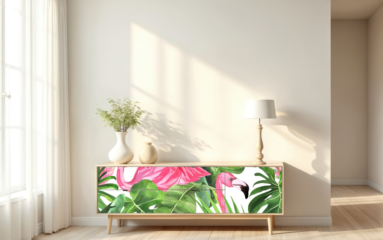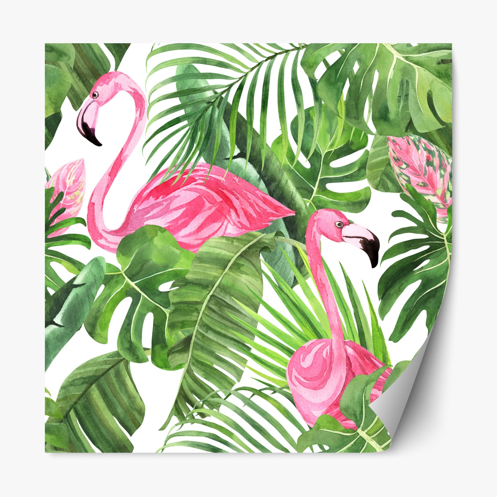 Repositionierbarer Aufkleber Rosa flamingos tropisches aquarellmuster