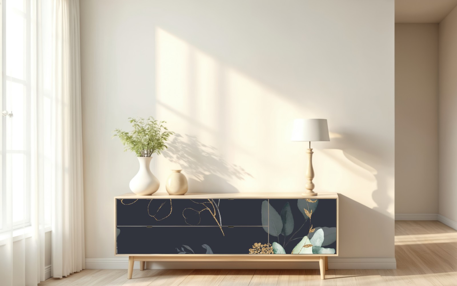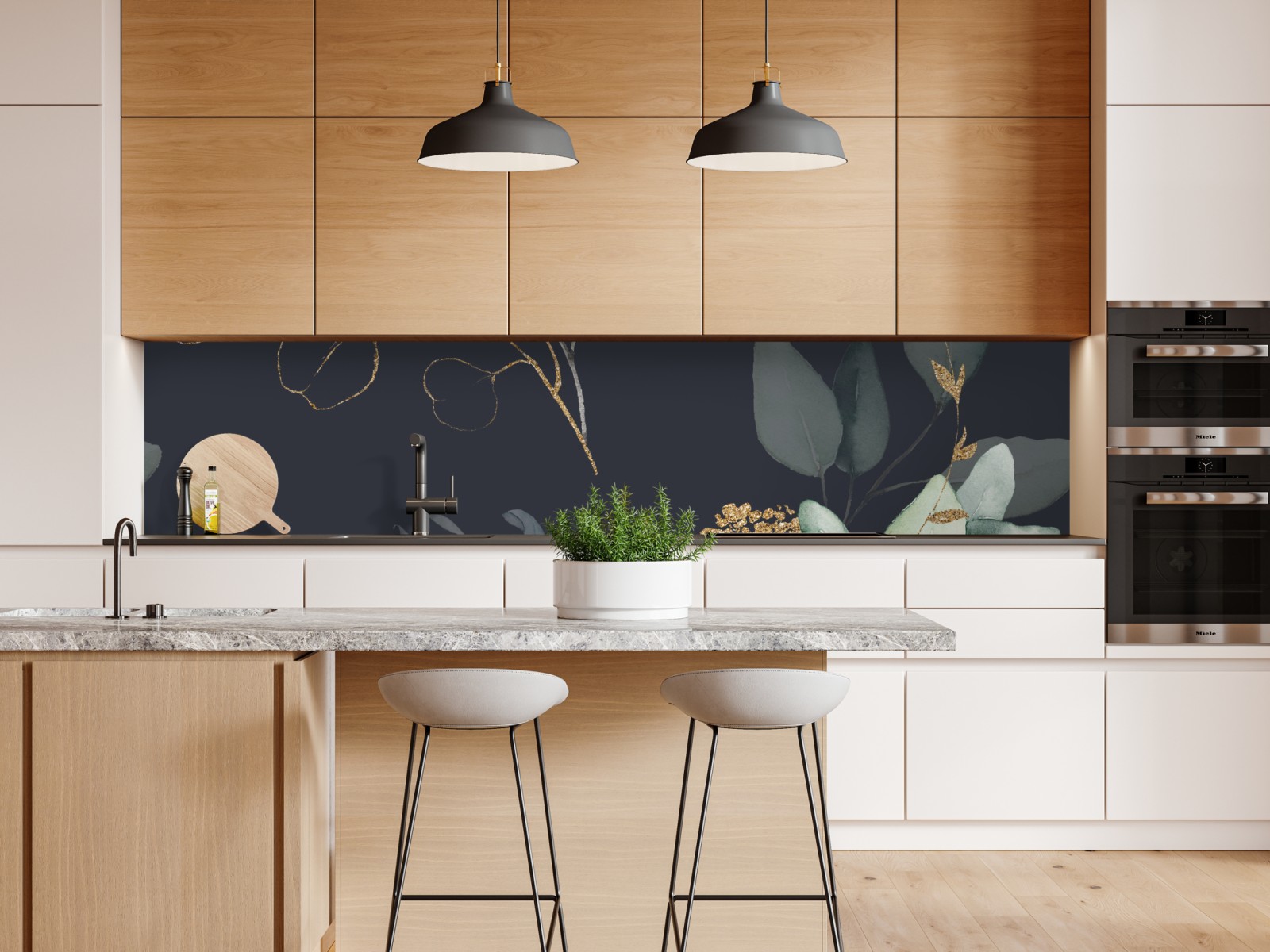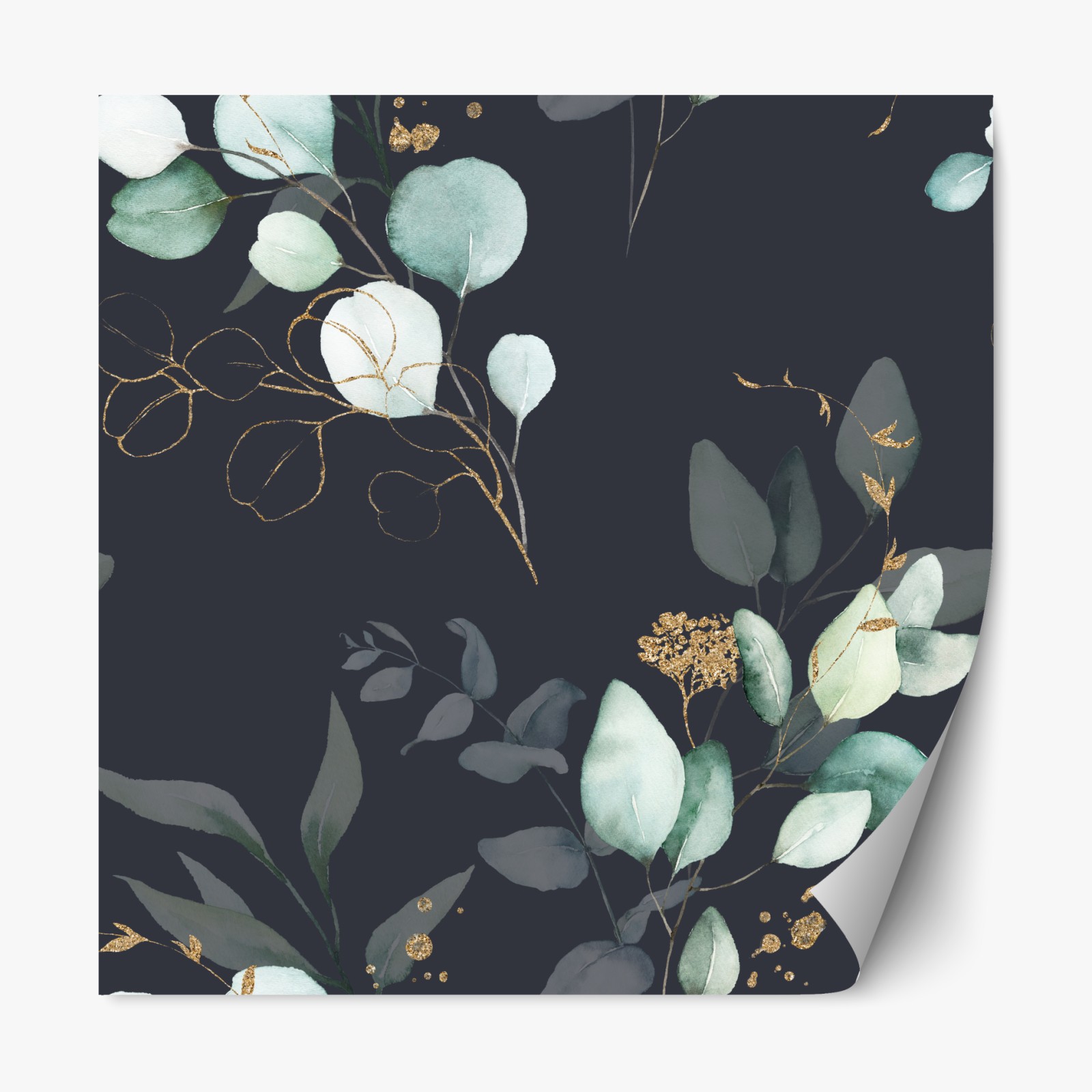 Repositionierbarer Aufkleber Eukalyptus aquarellblätter auf dunklem hintergrund