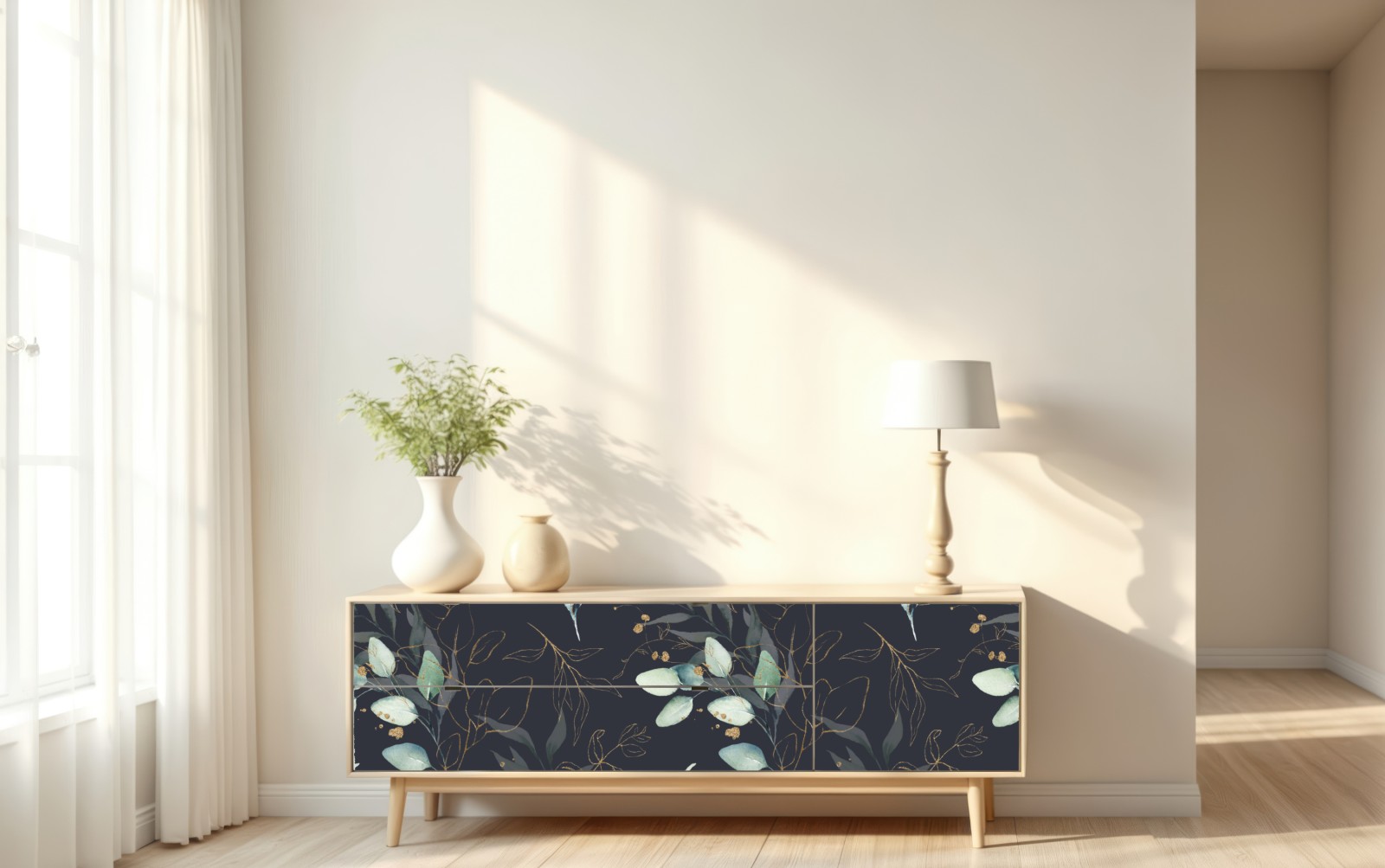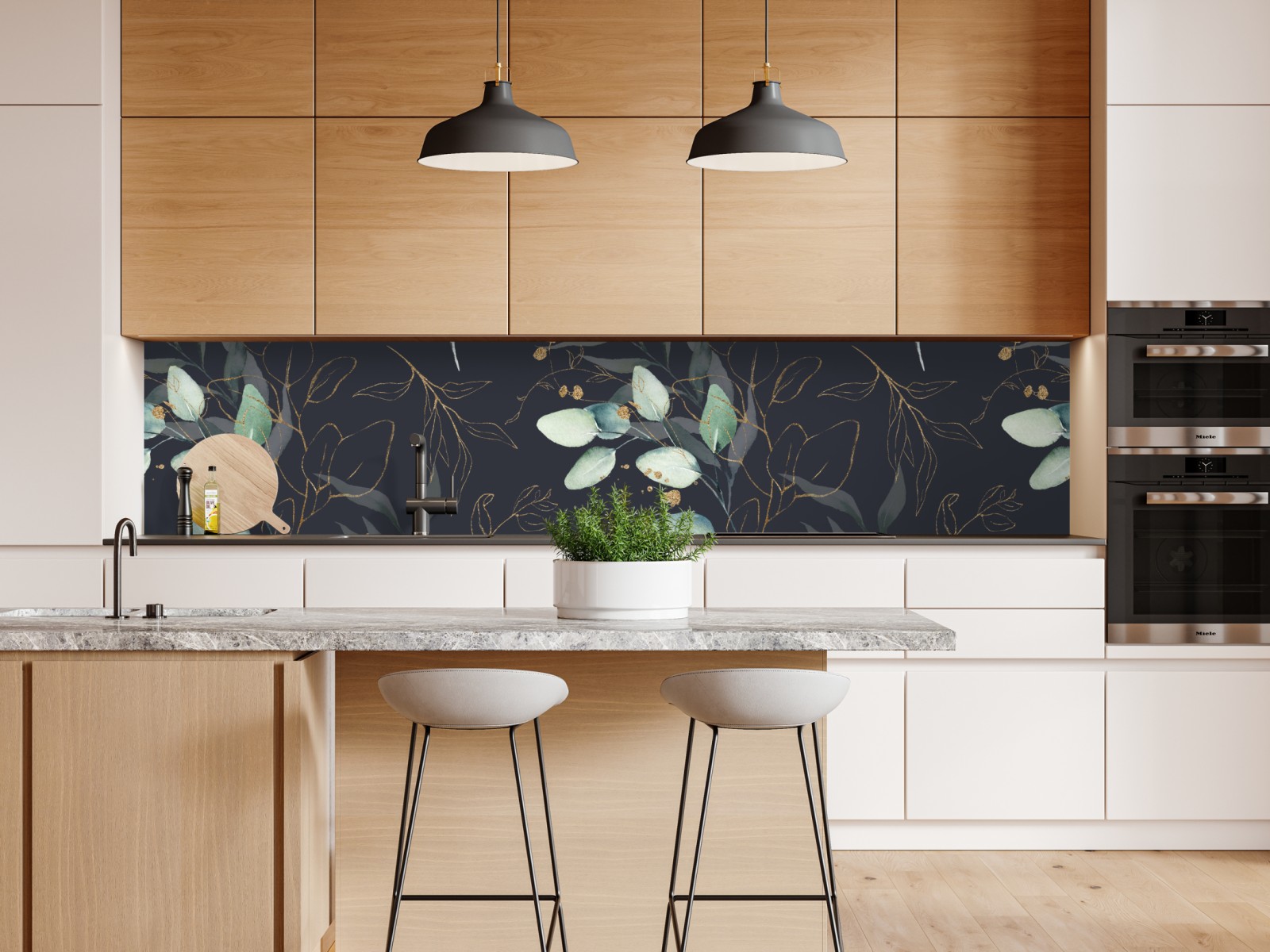 Repositionierbarer Aufkleber Aquarell eukalyptusblätter auf dunklem hintergrund