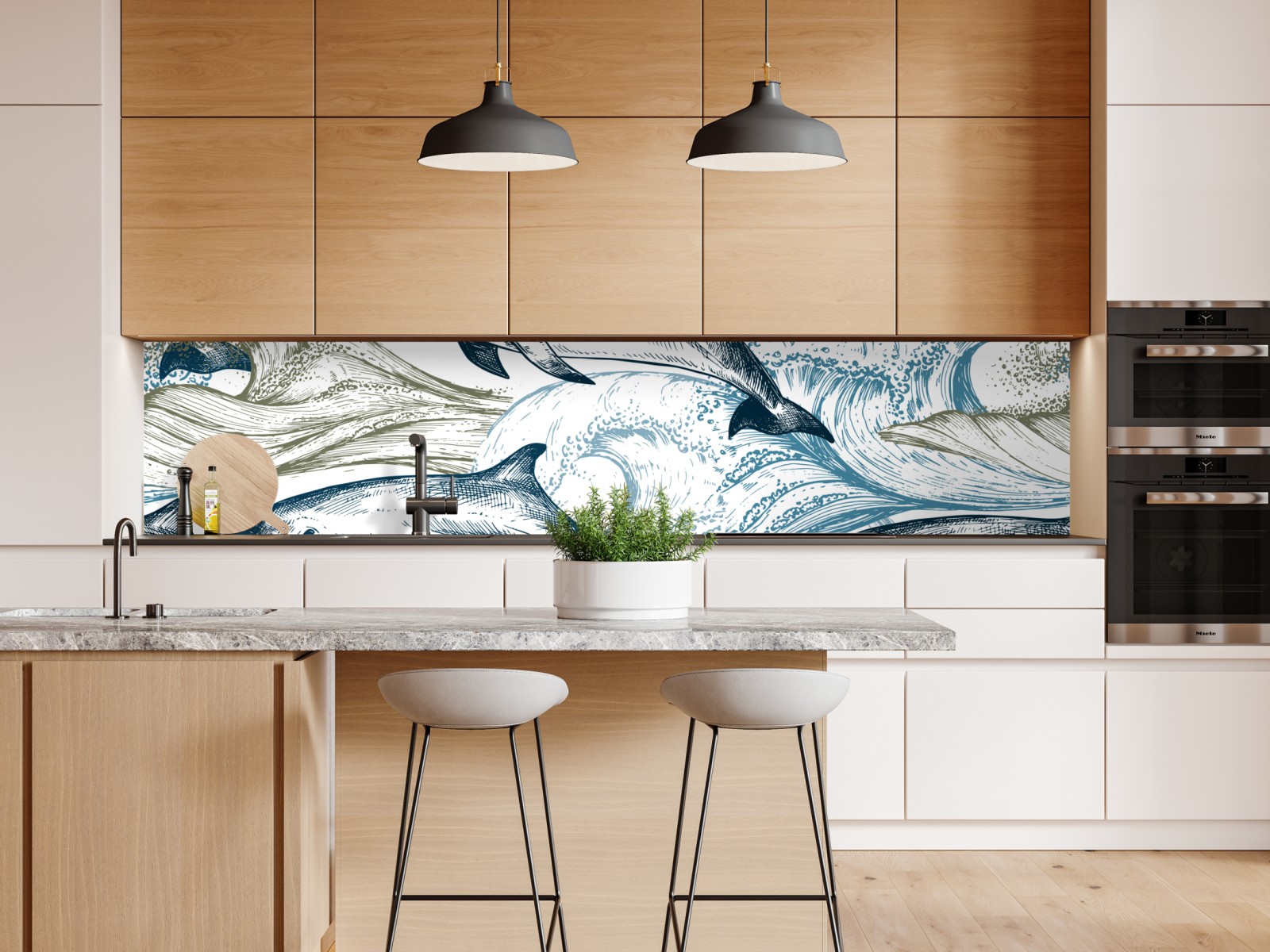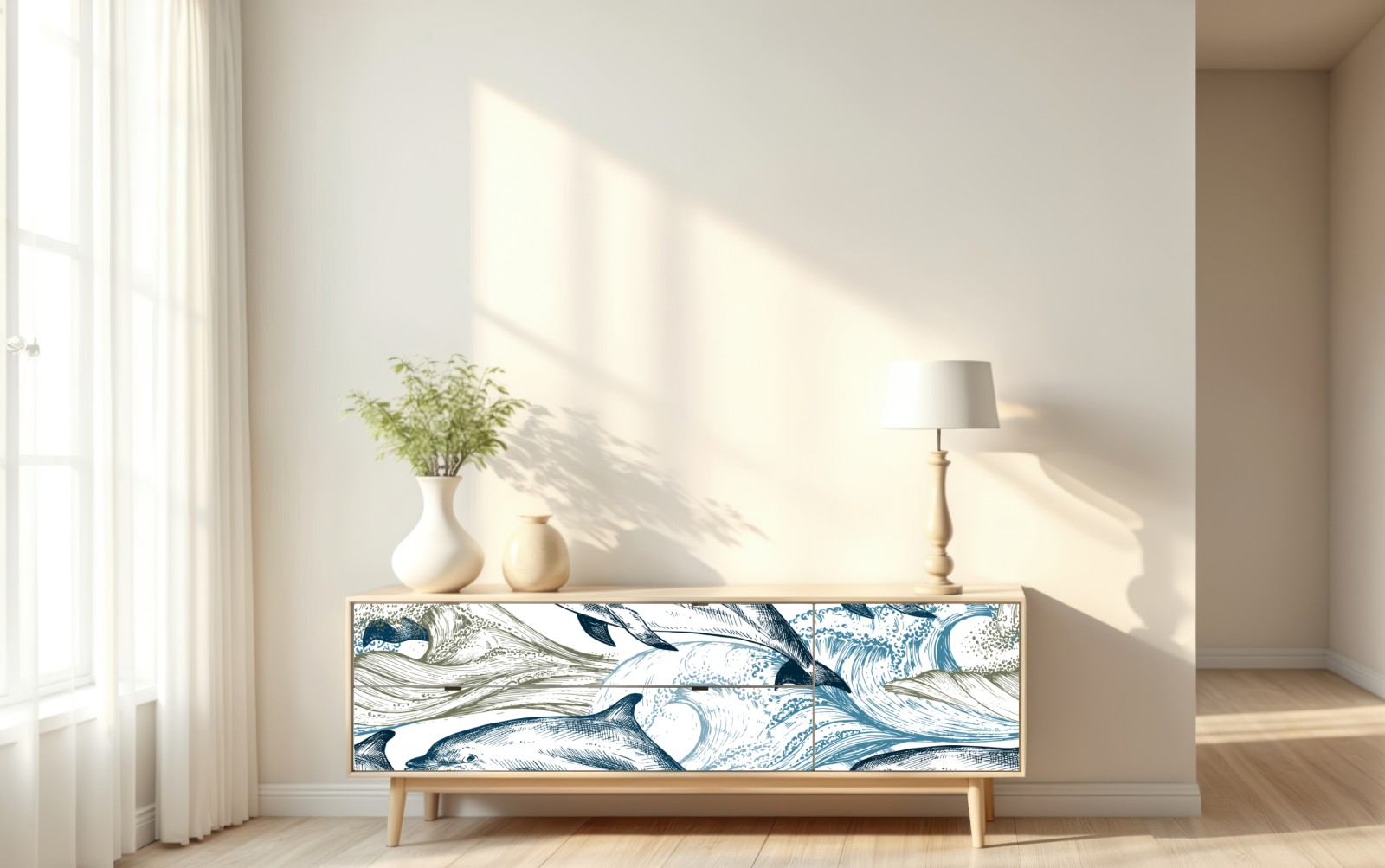 Repositionierbarer Aufkleber Vintage delfine ozeanillustration