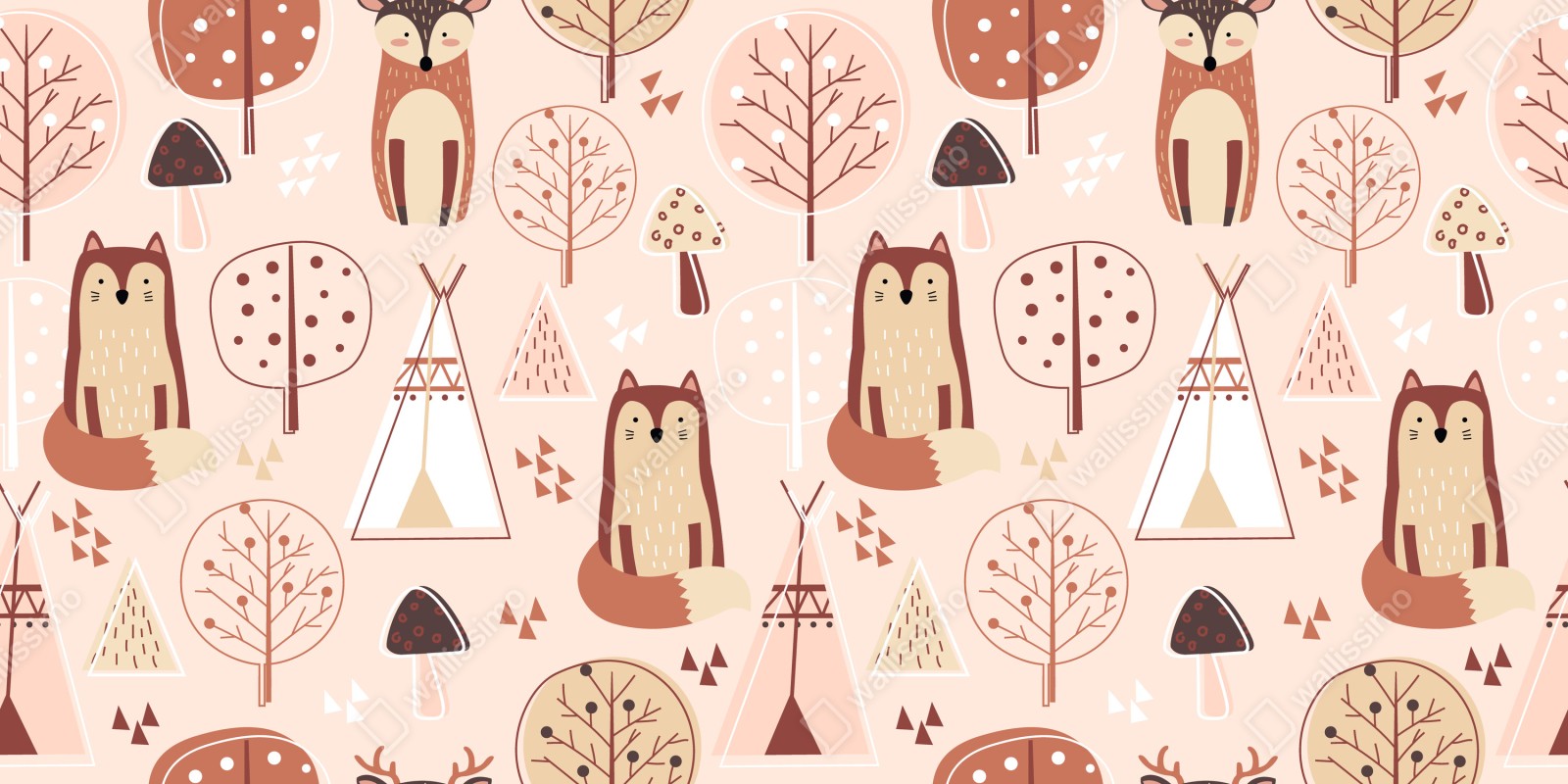 Repositionierbarer Aufkleber Waldfüchse muster für kinderzimmer
