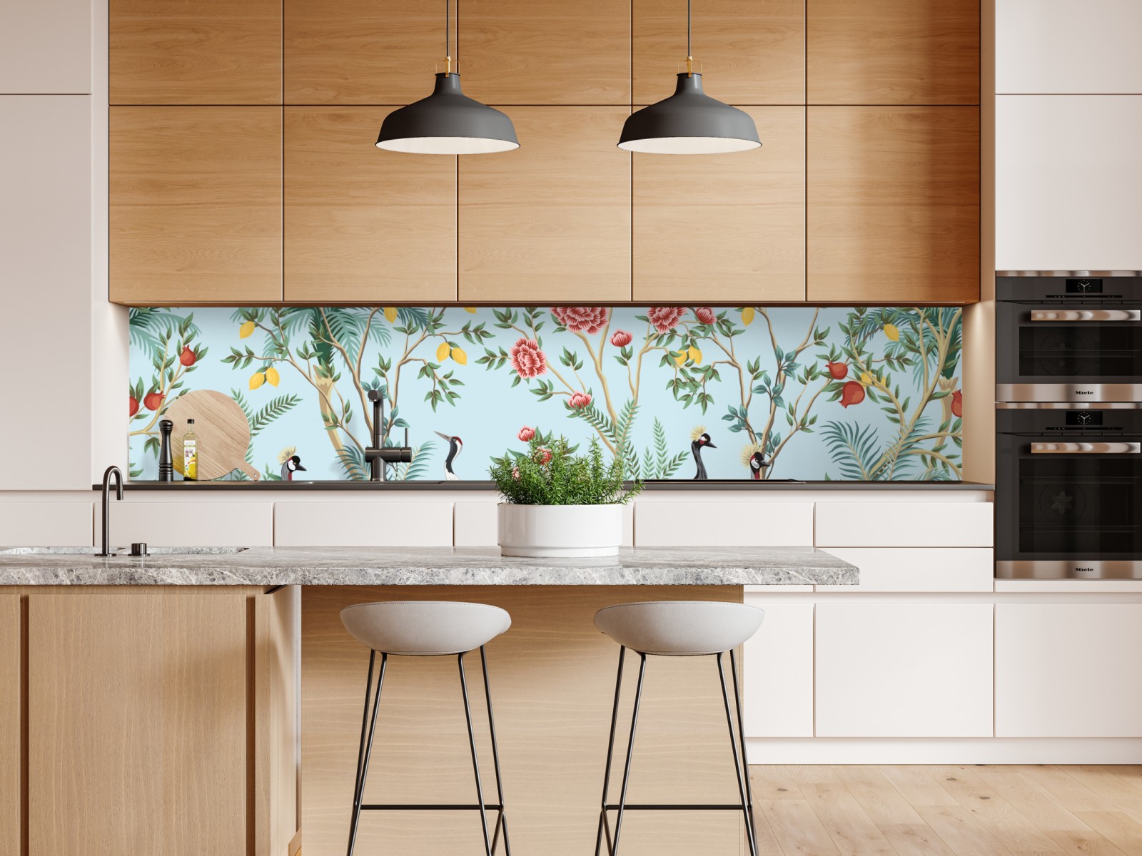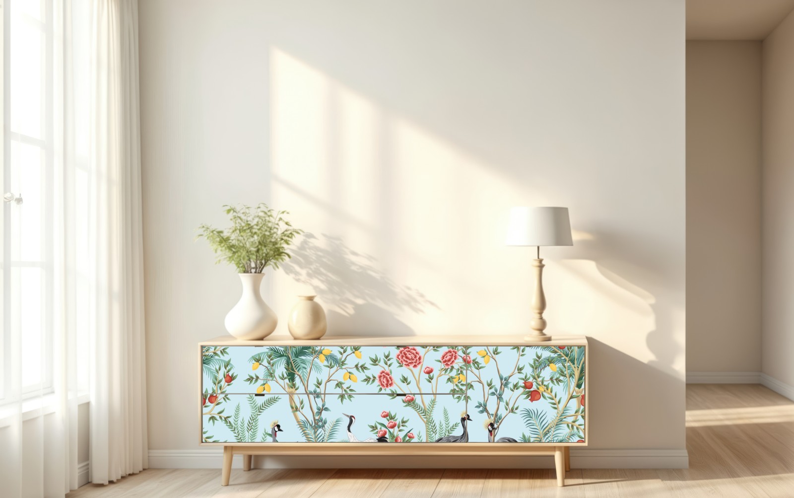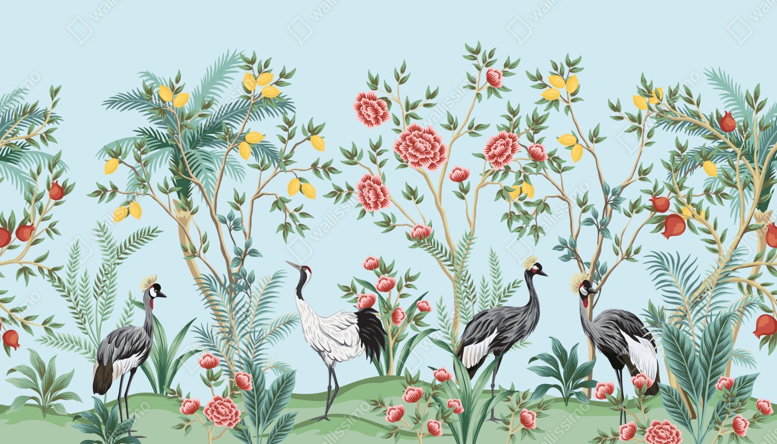 Repositionierbarer Aufkleber Eleganter kranichgarten mit blüten