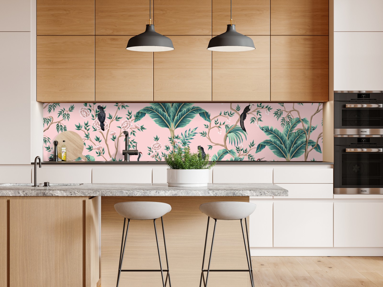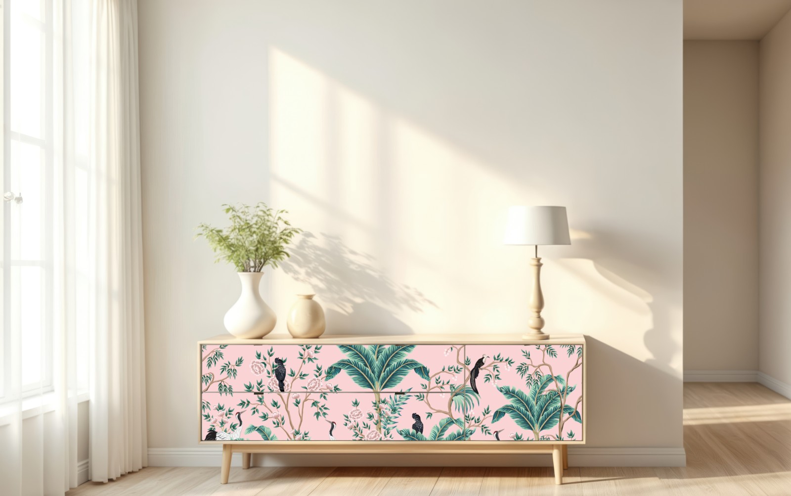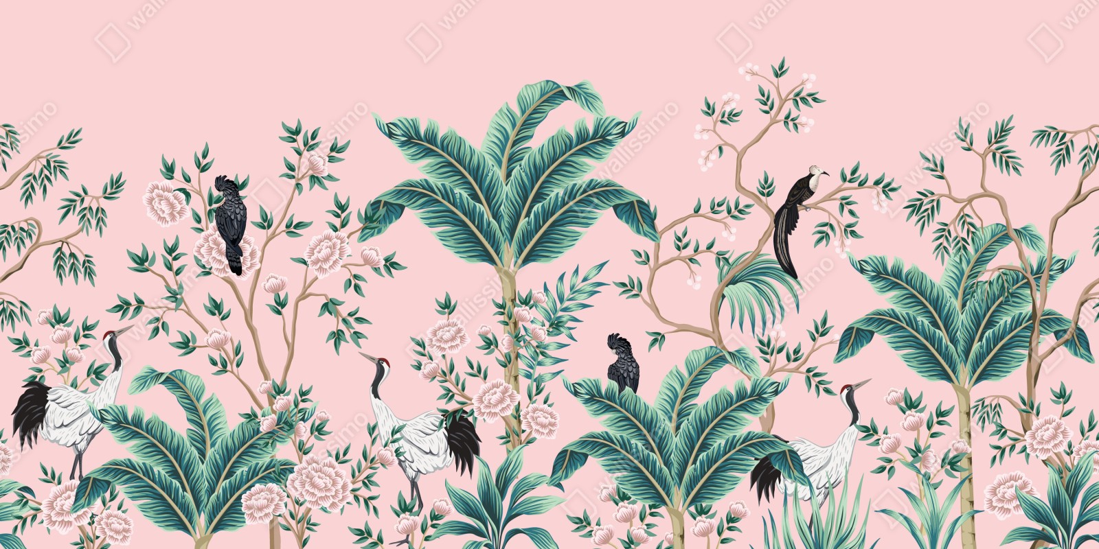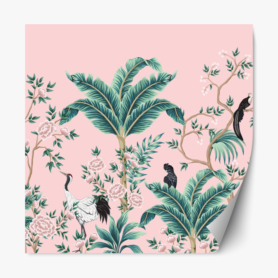 Repositionierbarer Aufkleber Pastell tropisches botanisches muster mit kranichen