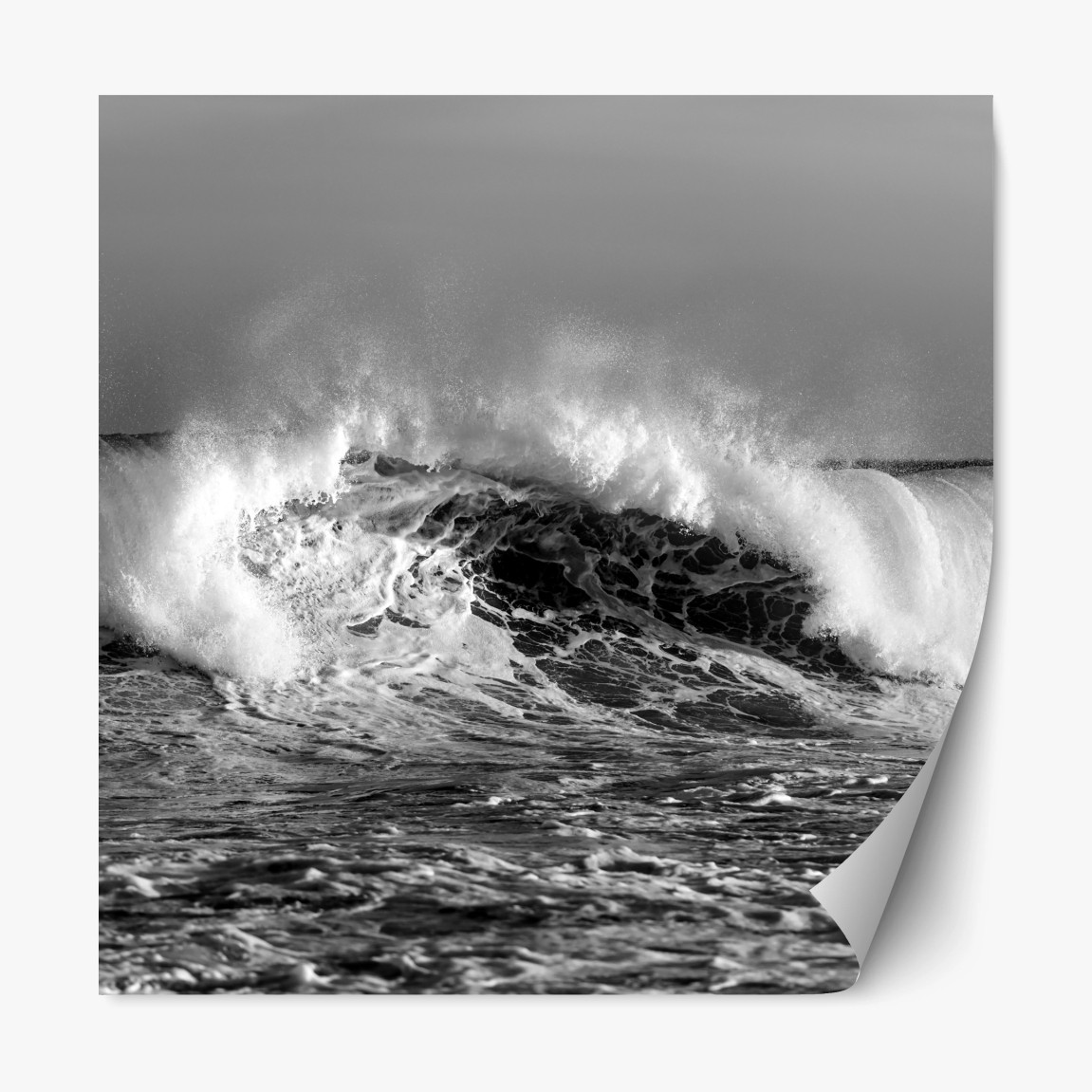 Repositionierbarer Aufkleber Dramatische schwarzweiß-welle des ozeans