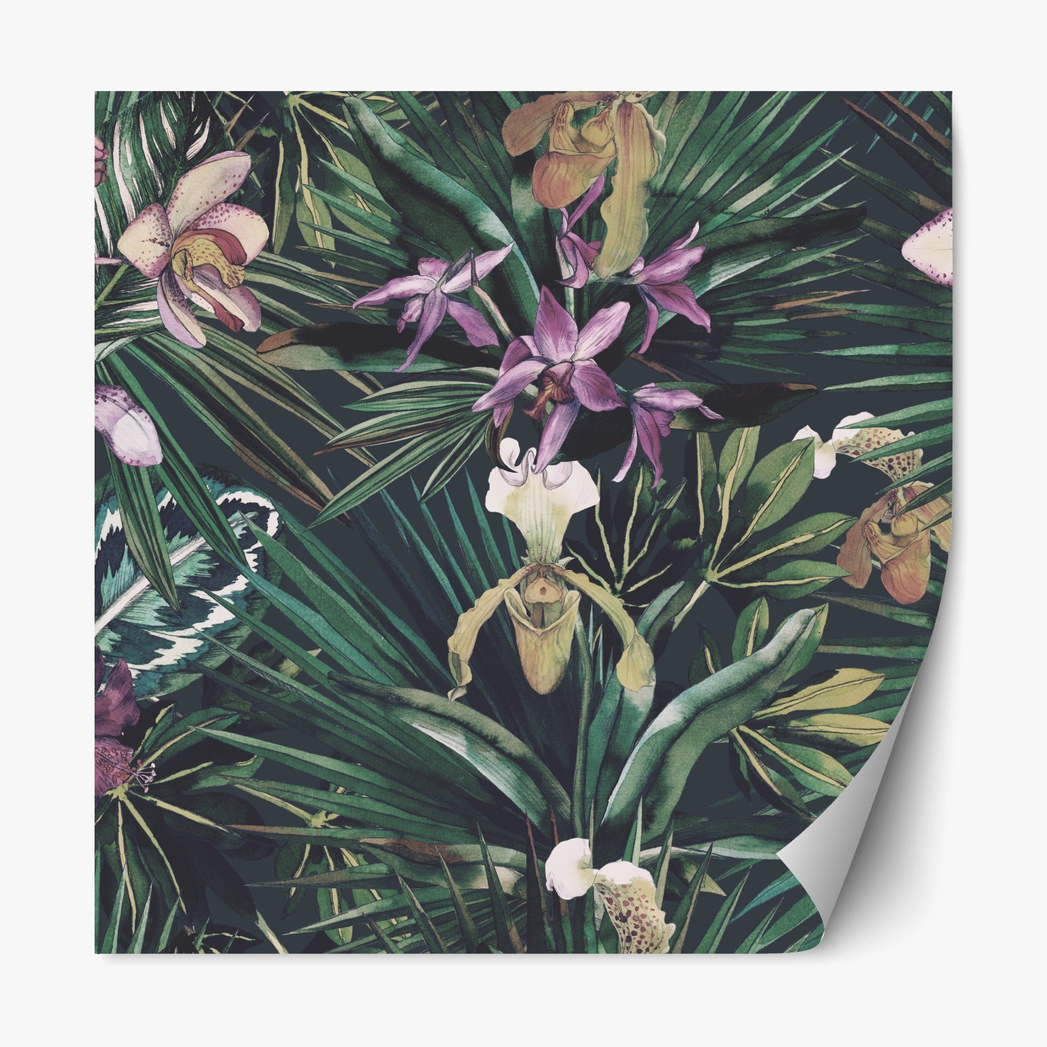 Repositionierbarer Aufkleber Tropische orchideen in aquarell und palmblättern