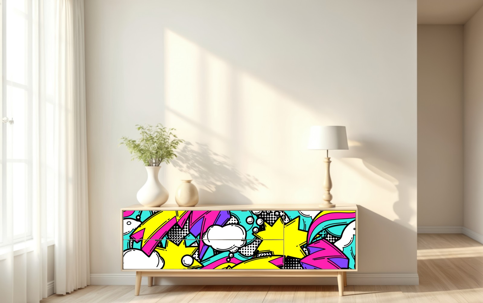 Repositionierbarer Aufkleber Farbenfrohes pop-art comicmuster